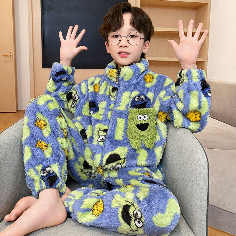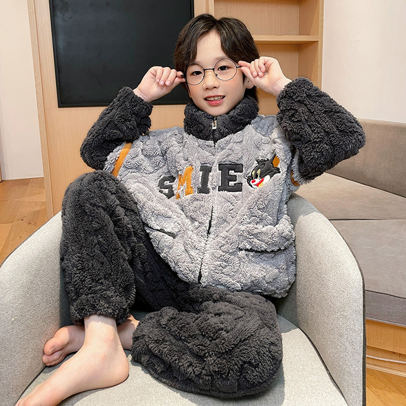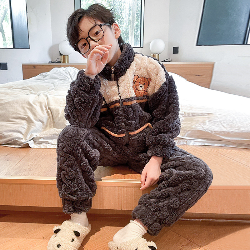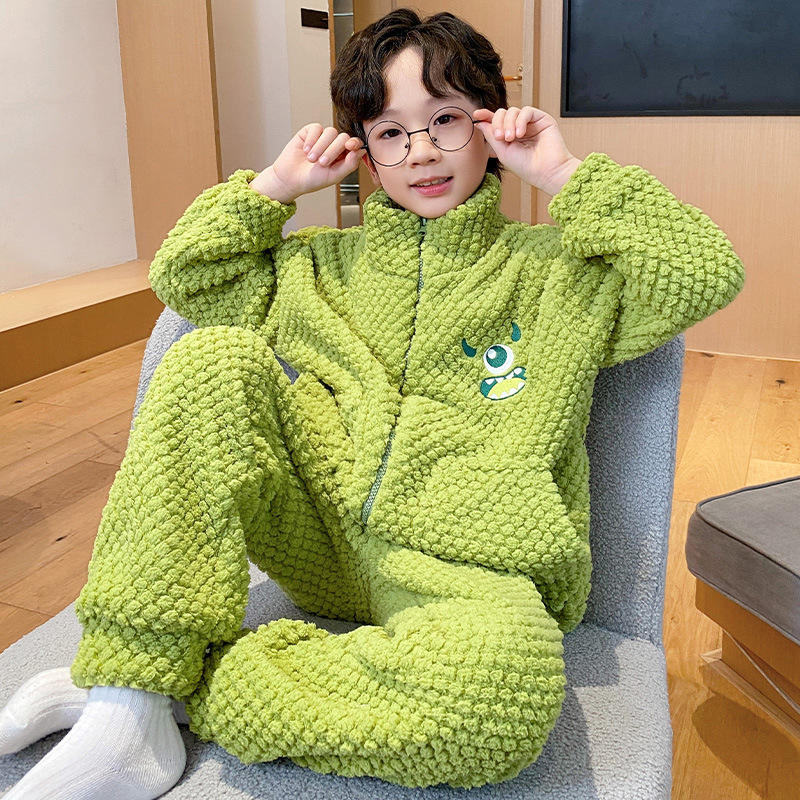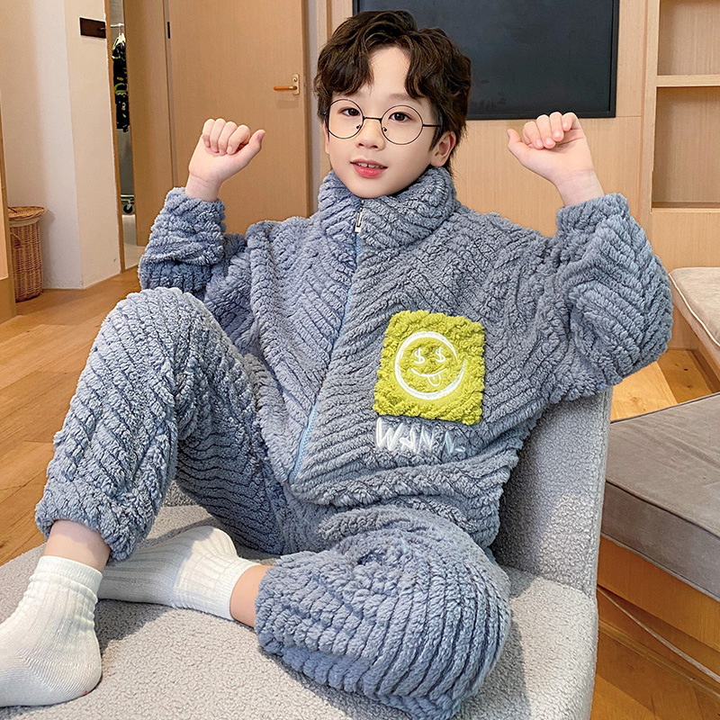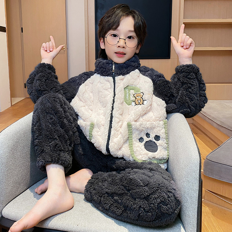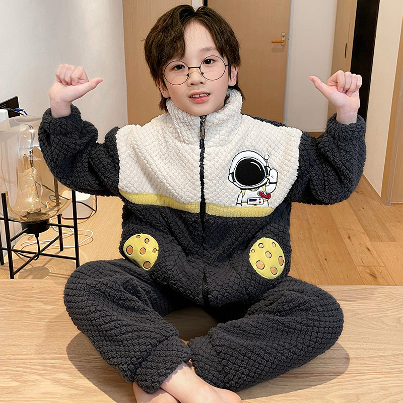 어린이 잠옷 소년 가을과 겨울 산호 양털 두꺼운 플란넬 아기 소년 중대형 어린이 가정 의류 세트