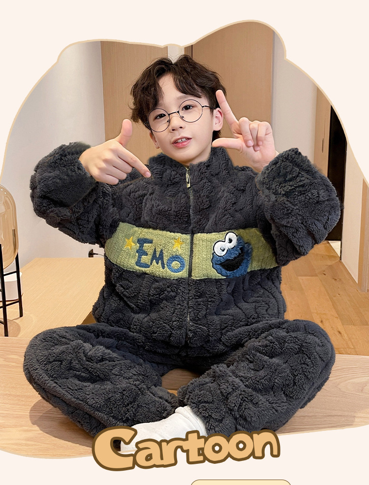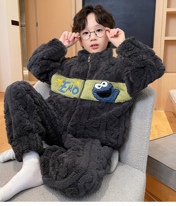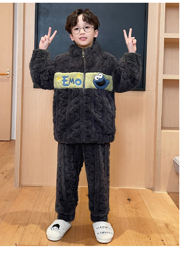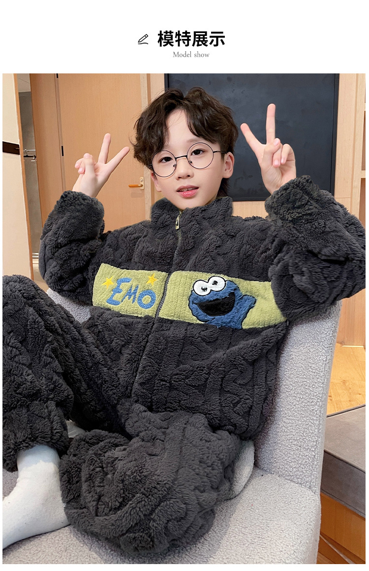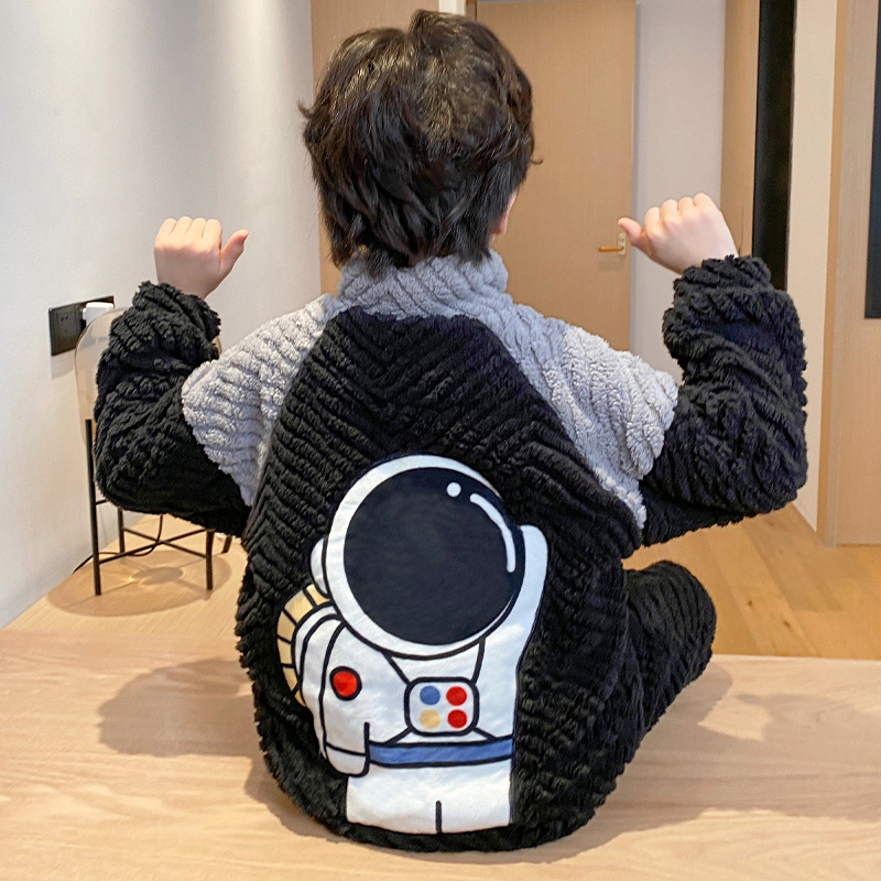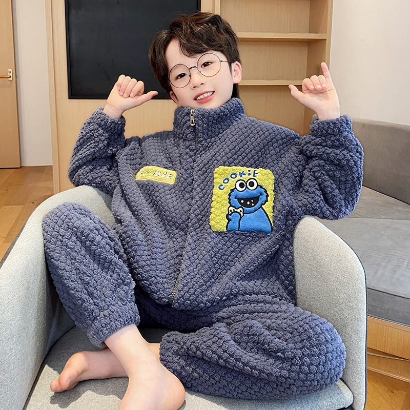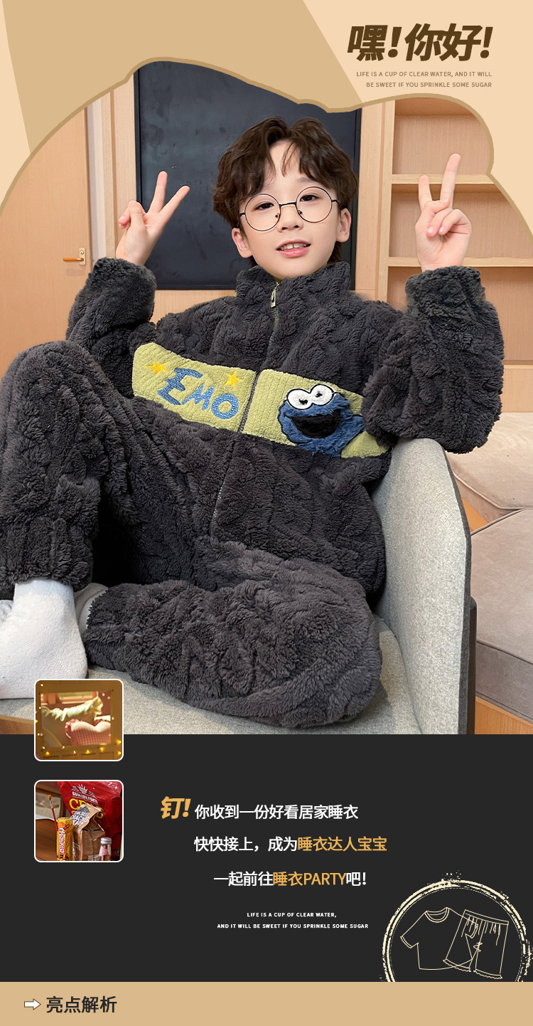 어린이 잠옷 소년 가을과 겨울 산호 양털 두꺼운 플란넬 아기 소년 중대형 어린이 가정 의류 세트