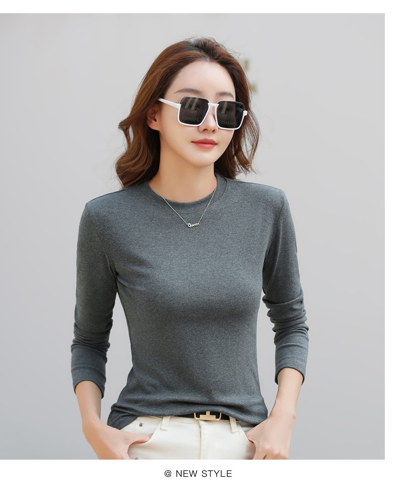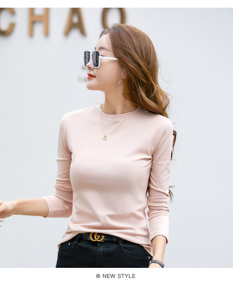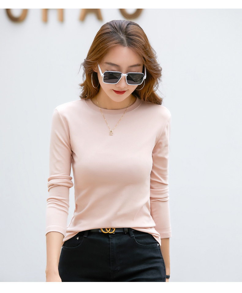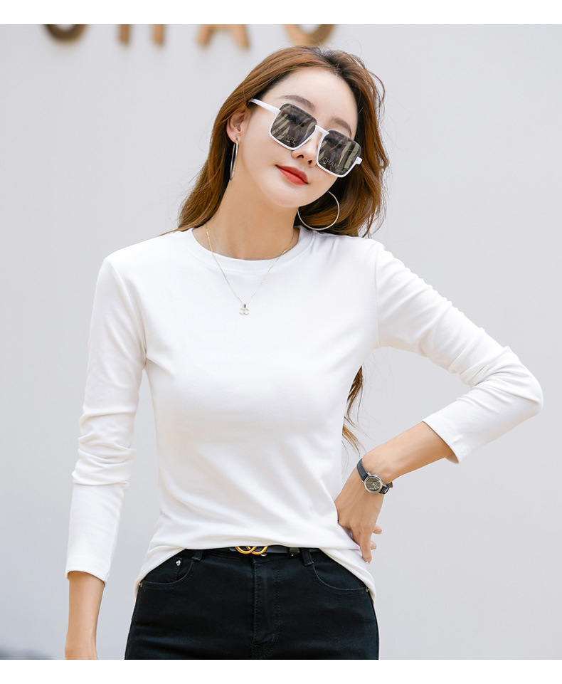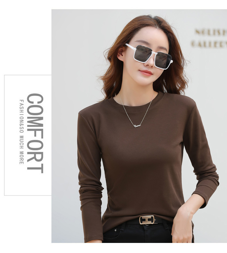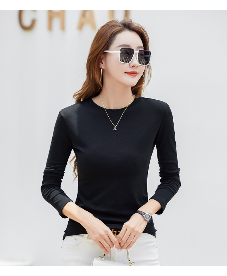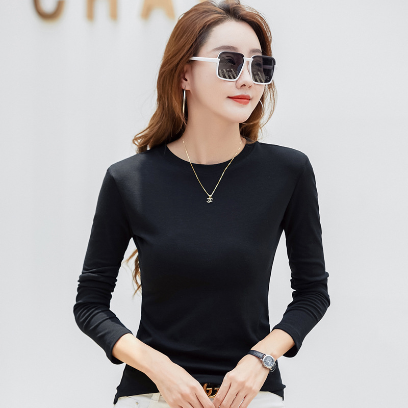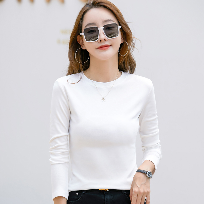 378 라운드 넥 긴 소매 단색 면 베이스 셔츠 여자의 가을과 겨울 새로운 서양 스타일 플러스 사이즈 슬림 한 봐 캐주얼 모든 매치 높은 탄성 티셔츠스토어 가기