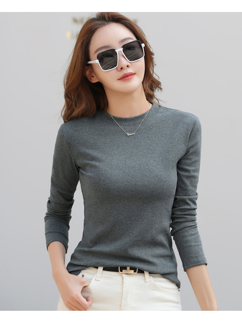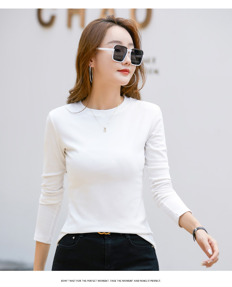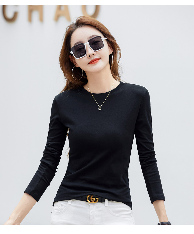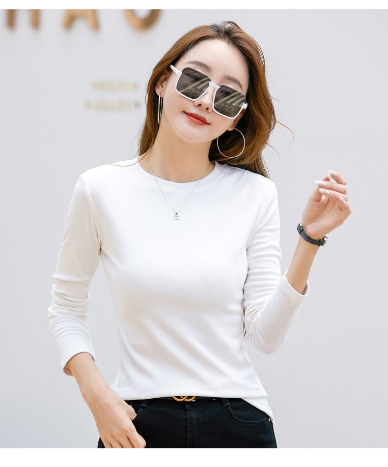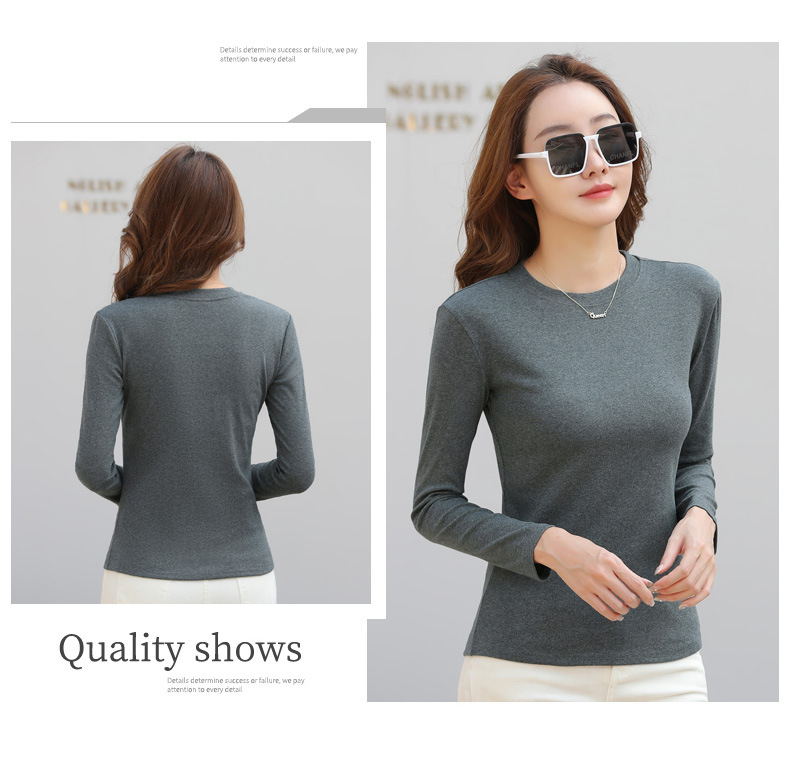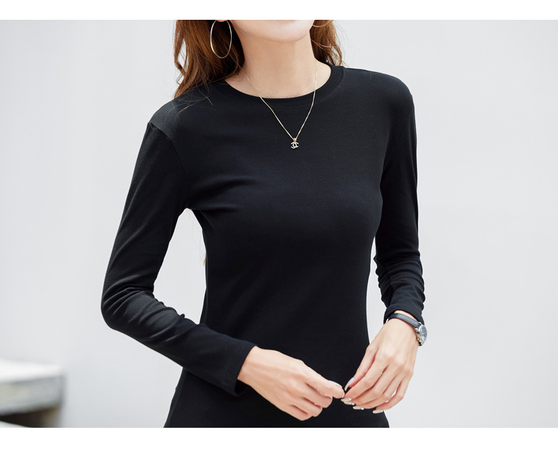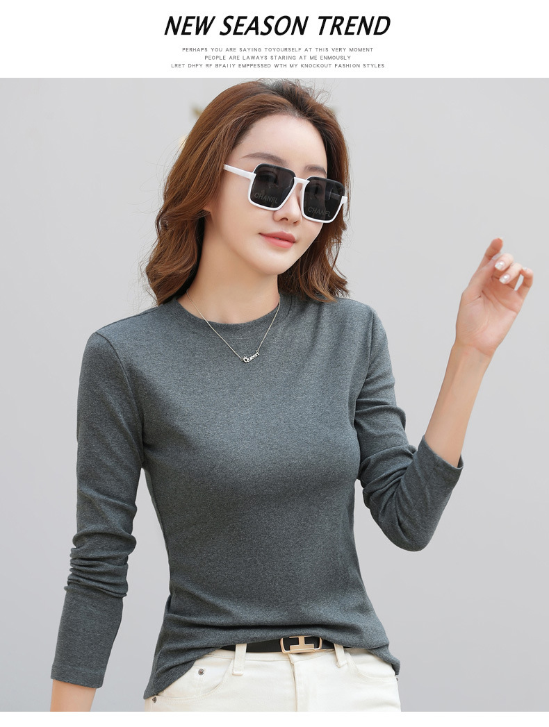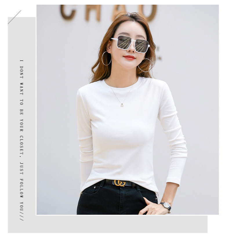 378 라운드 넥 긴 소매 단색 면 베이스 셔츠 여자의 가을과 겨울 새로운 서양 스타일 플러스 사이즈 슬림 한 봐 캐주얼 모든 매치 높은 탄성 티셔츠스토어 가기