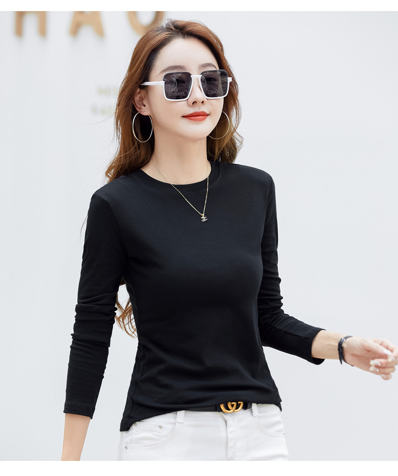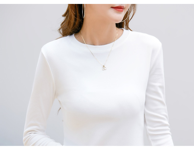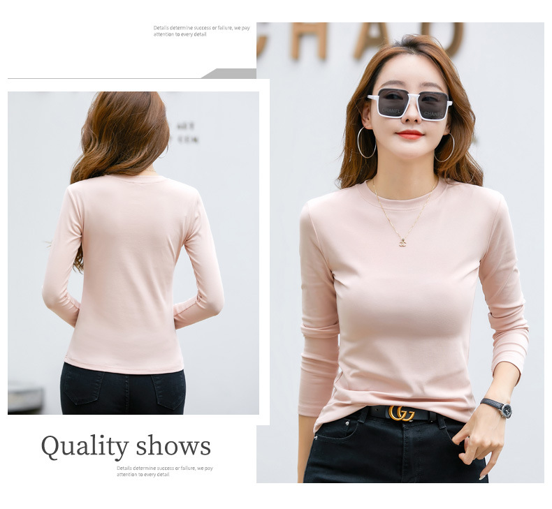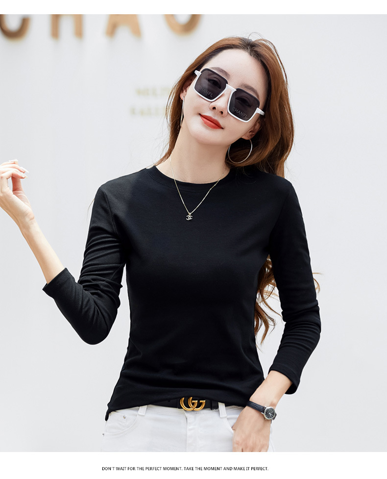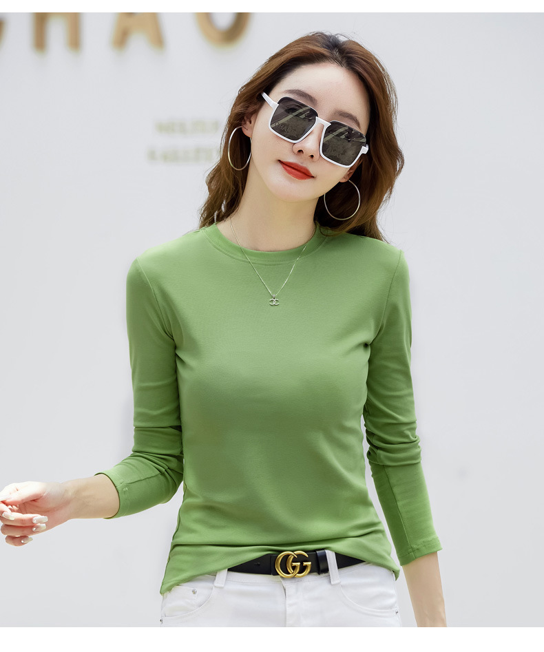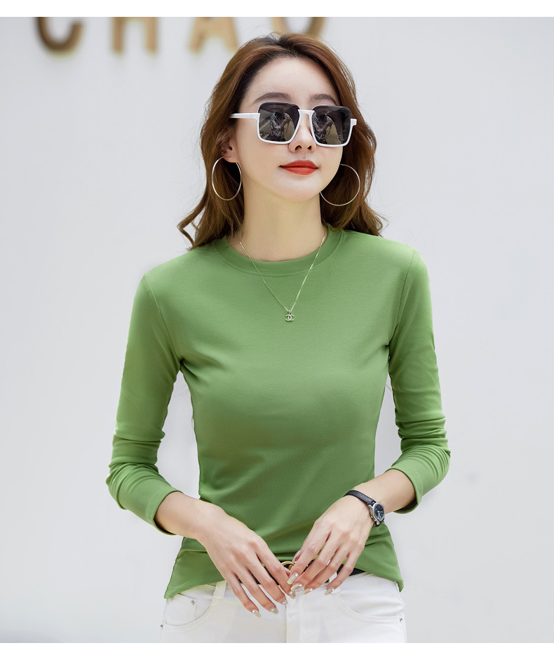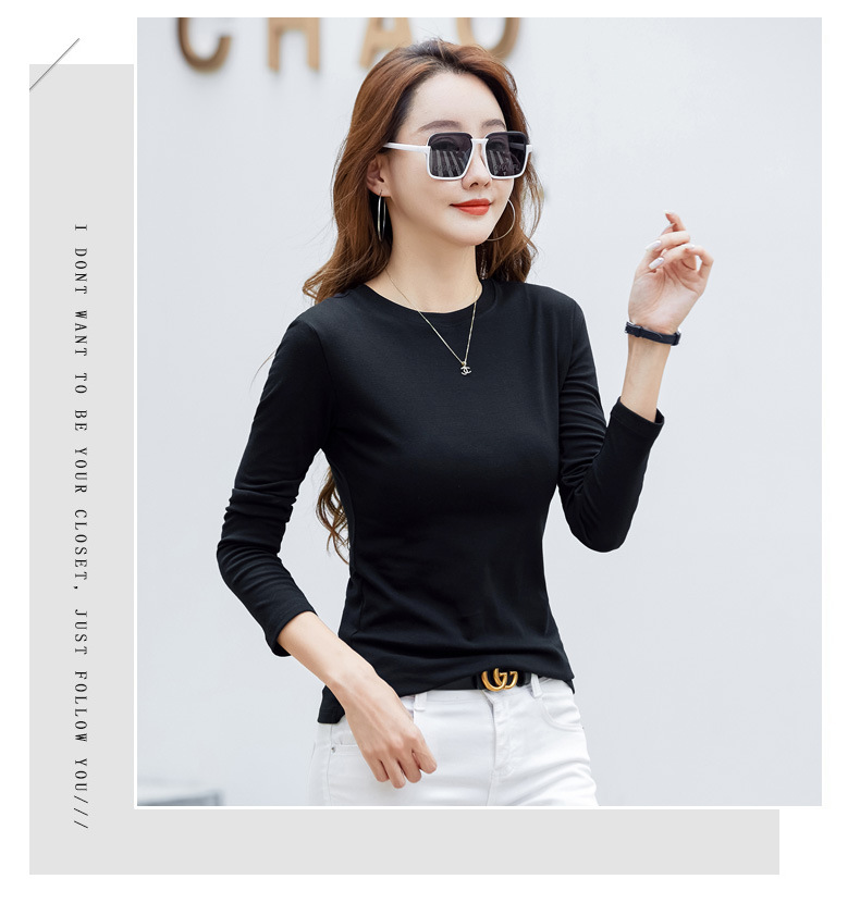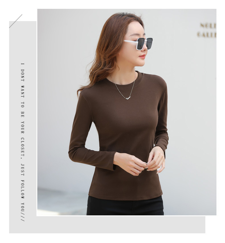 378 라운드 넥 긴 소매 단색 면 베이스 셔츠 여자의 가을과 겨울 새로운 서양 스타일 플러스 사이즈 슬림 한 봐 캐주얼 모든 매치 높은 탄성 티셔츠스토어 가기