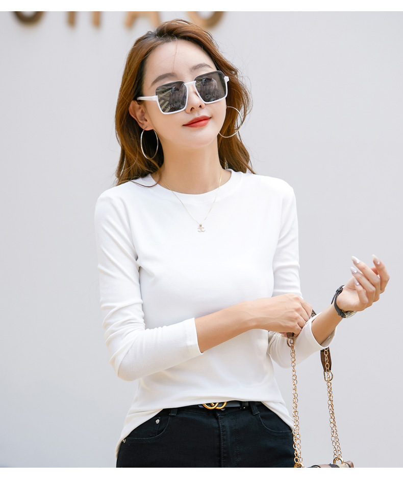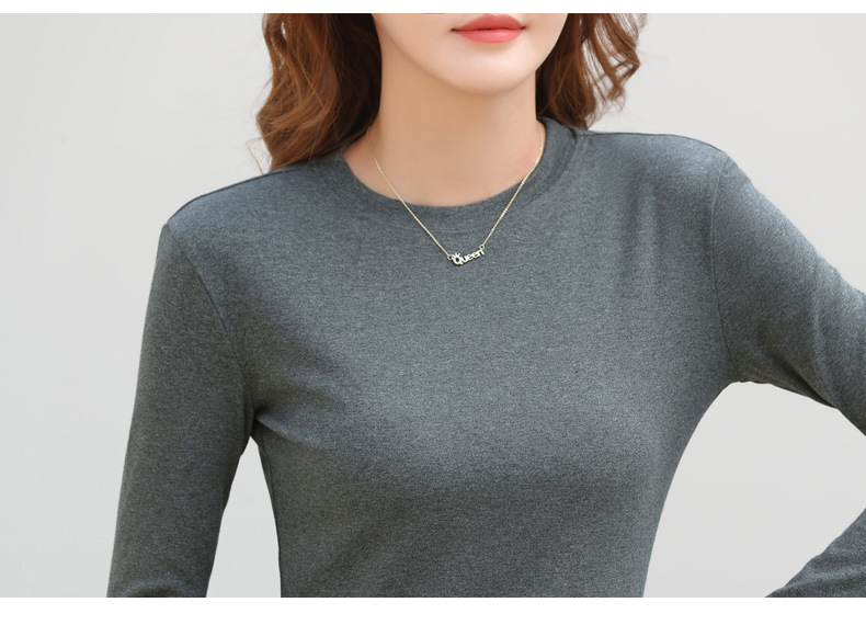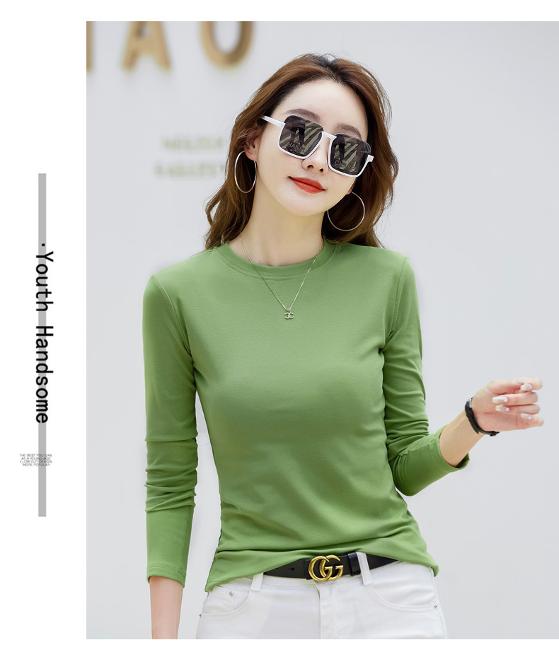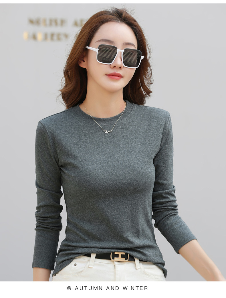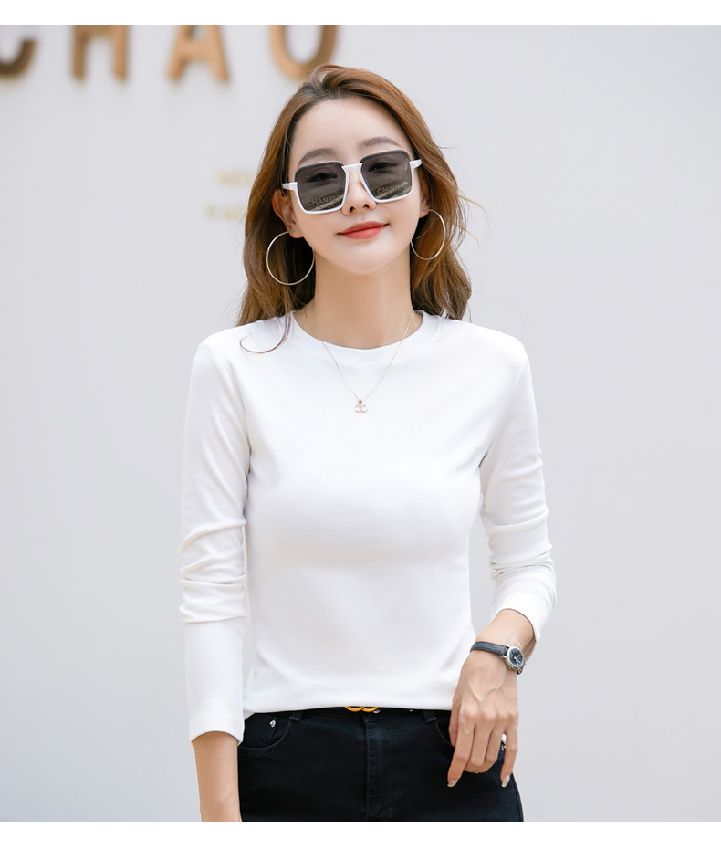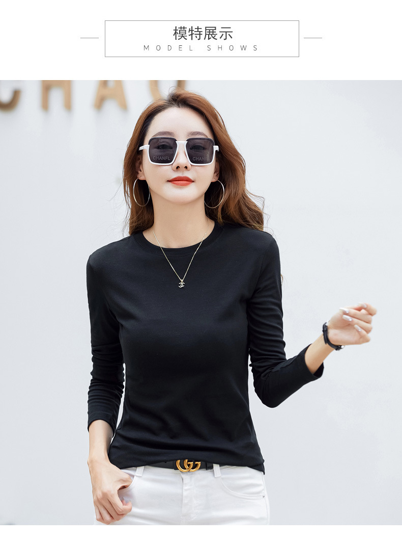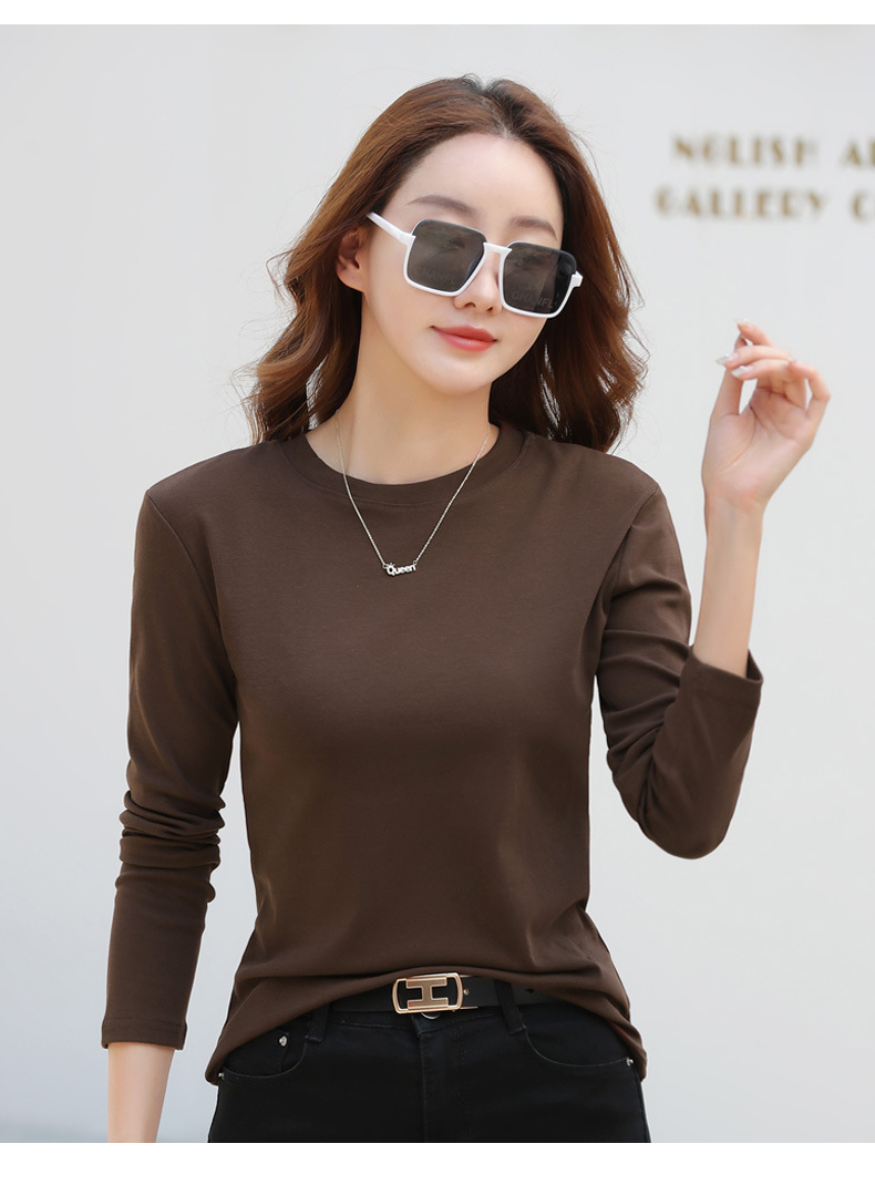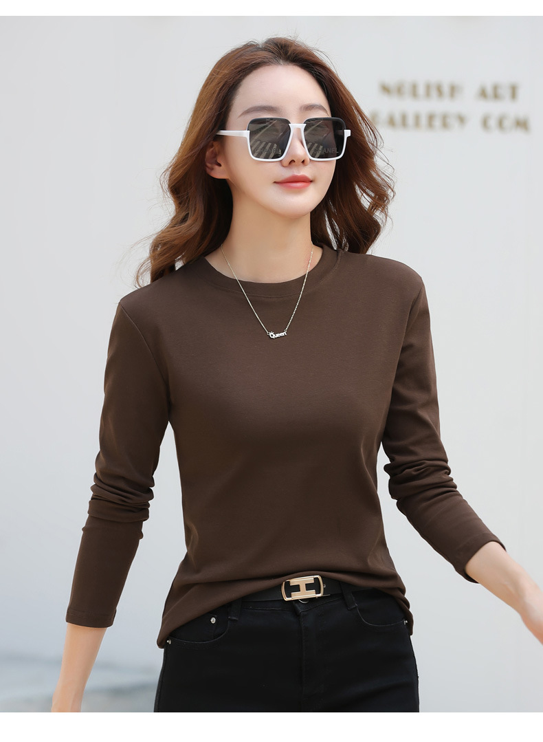 378 라운드 넥 긴 소매 단색 면 베이스 셔츠 여자의 가을과 겨울 새로운 서양 스타일 플러스 사이즈 슬림 한 봐 캐주얼 모든 매치 높은 탄성 티셔츠스토어 가기