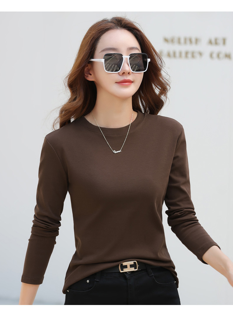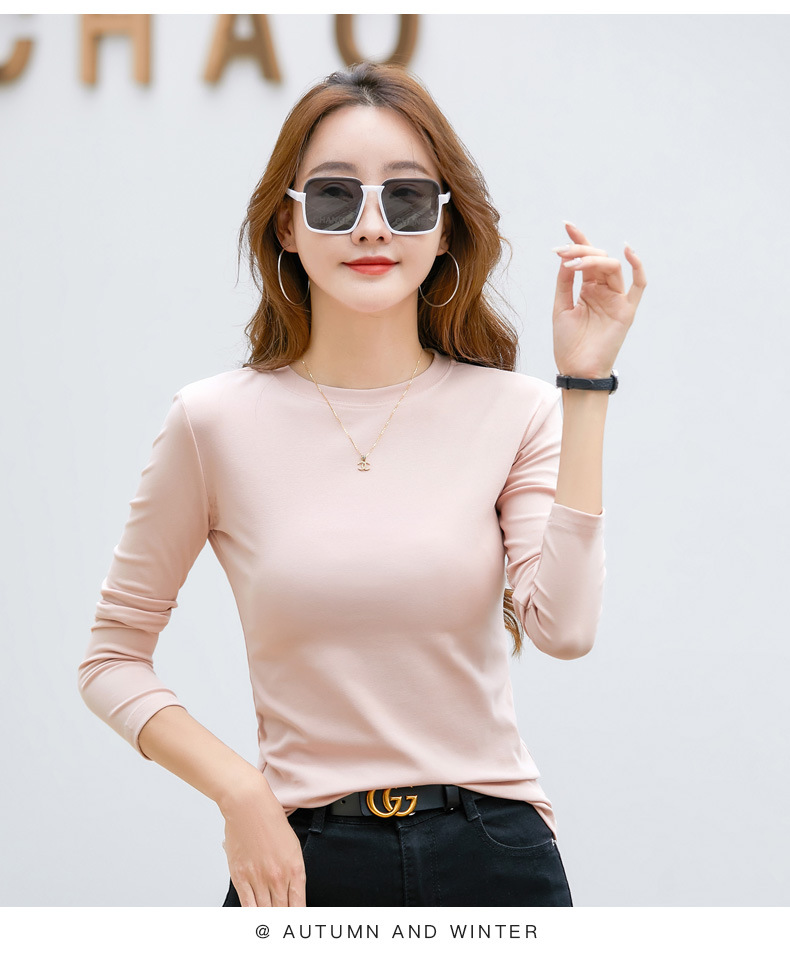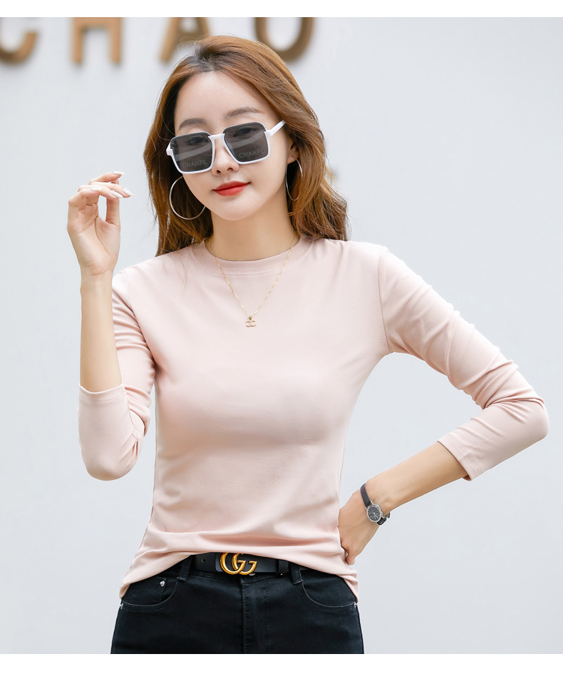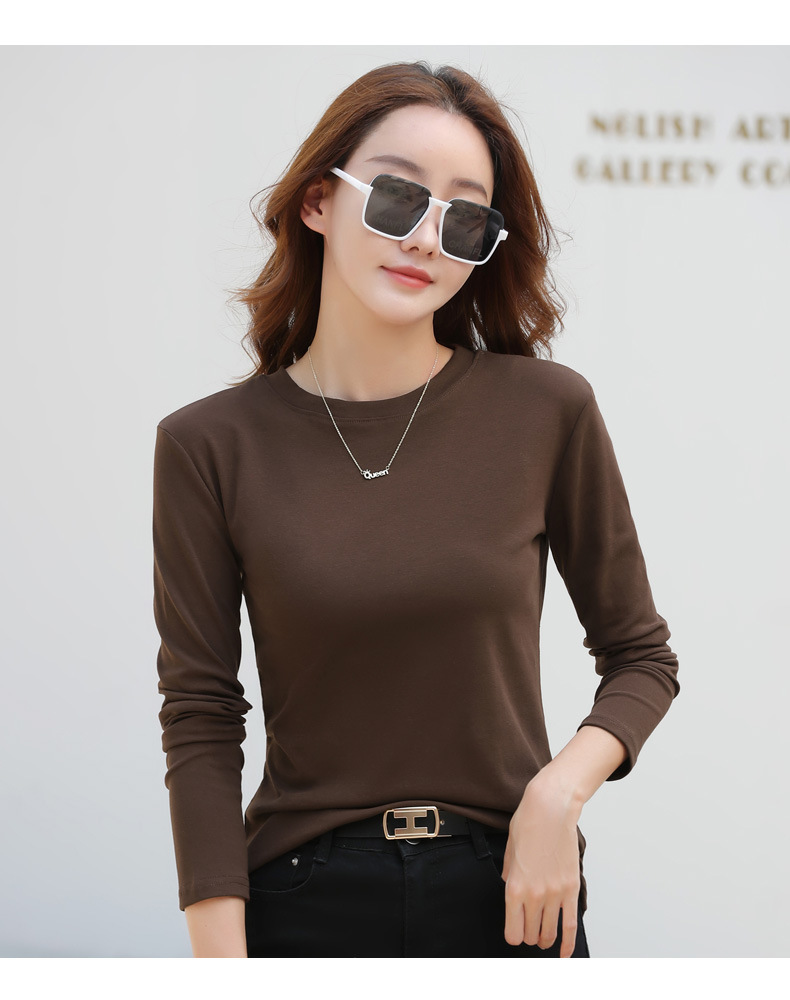 378 라운드 넥 긴 소매 단색 면 베이스 셔츠 여자의 가을과 겨울 새로운 서양 스타일 플러스 사이즈 슬림 한 봐 캐주얼 모든 매치 높은 탄성 티셔츠