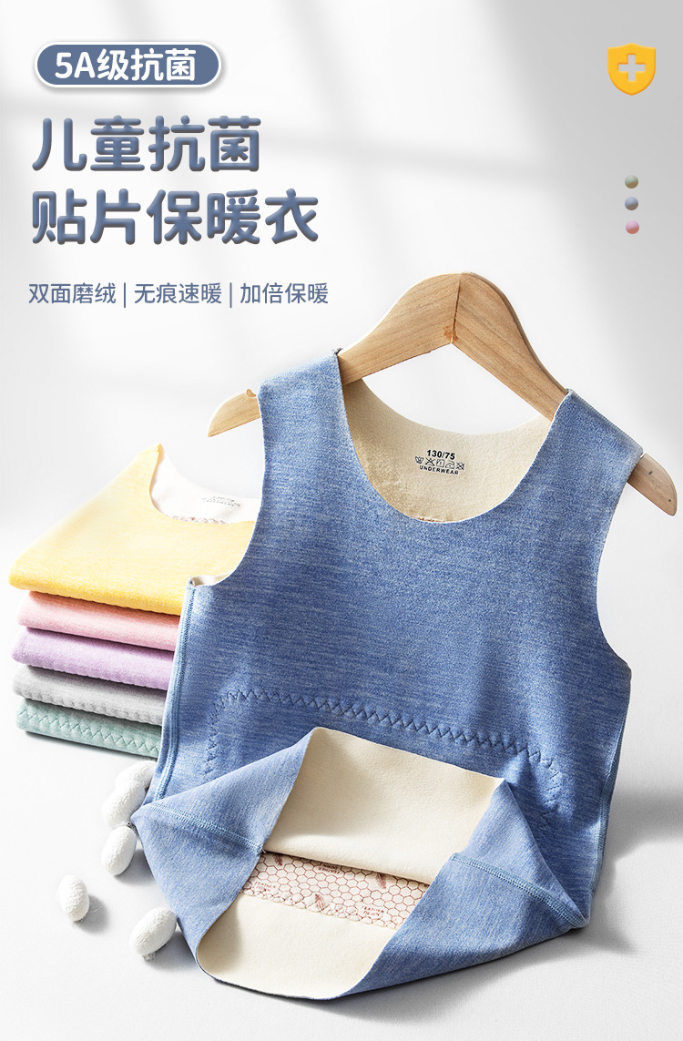 어린이 따뜻한 조끼 가을, 겨울 난방 원활한 벨벳 조끼 양모 실크 항균 패치 아기 배꼽 보호 조끼
