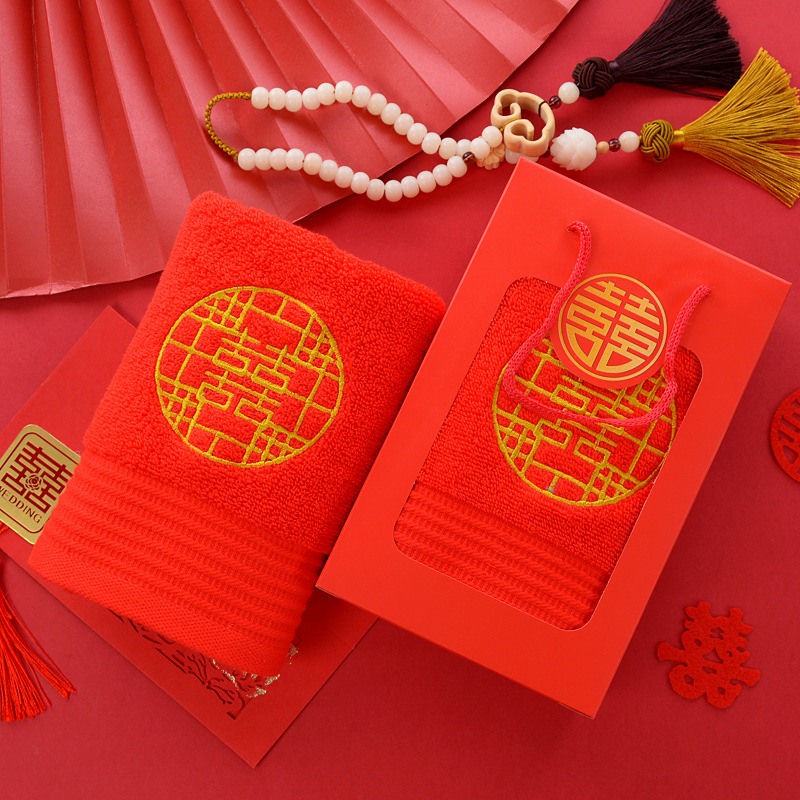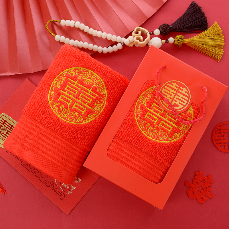 면 빨간 수건 한 쌍의 행복한 단어 자수가 퇴색하지 않습니다 머리 빨간 선물 상자 결혼 동반자 선물 상자스토어 가기