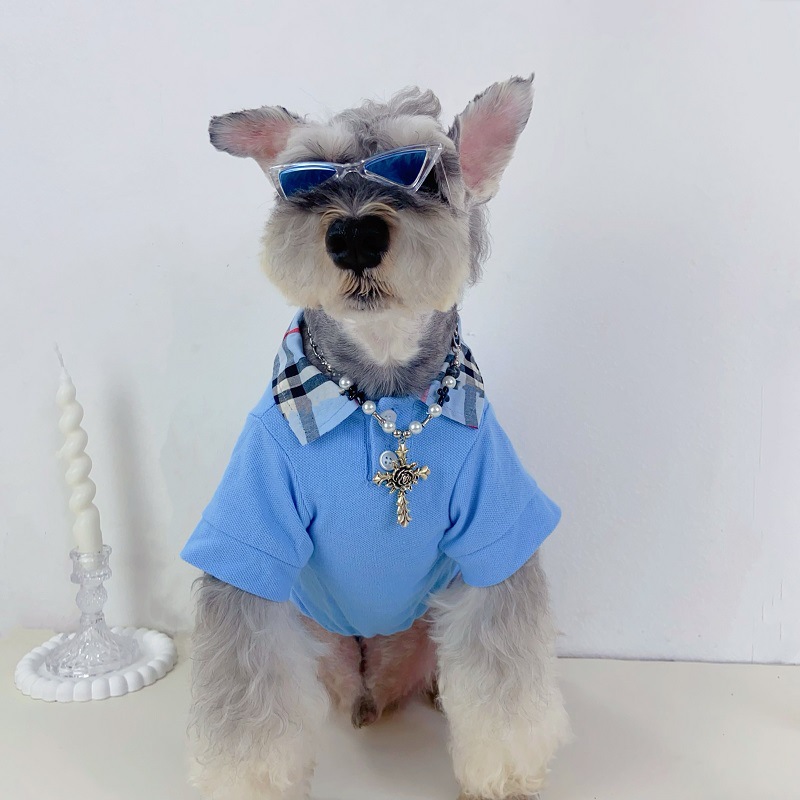 제조 업체 공급 애완 동물 패션 브랜드 폴로 셔츠 개 고양이 격자 무늬 옷깃 스웨터 테디 schnery 작은 개 티셔츠스토어 가기