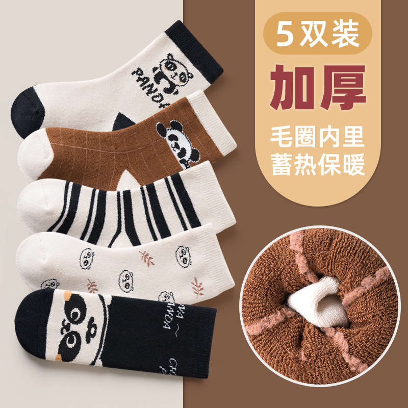 두리안 어린이 양말 도매 플러스 벨벳 패딩 테리 수건 양말 아기 양말면 미드 하이 튜브 소년 소녀 양말 가을과 겨울