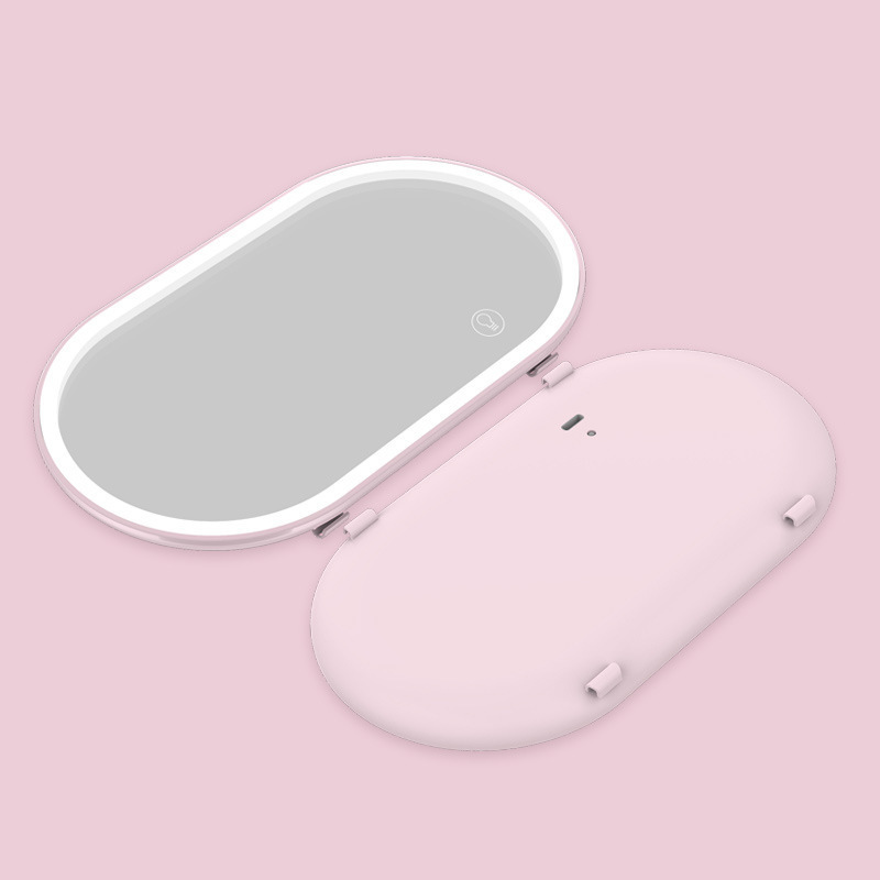1、将硅胶绑带扣在化妆镜背面的上边扣位。