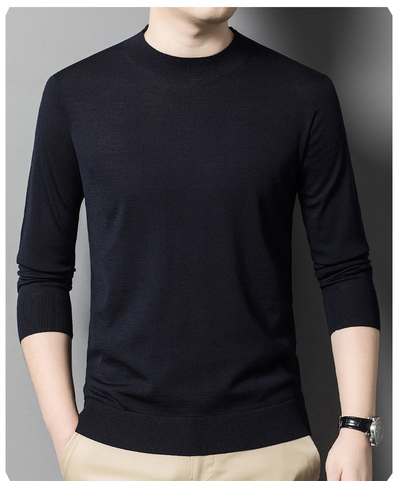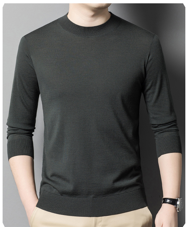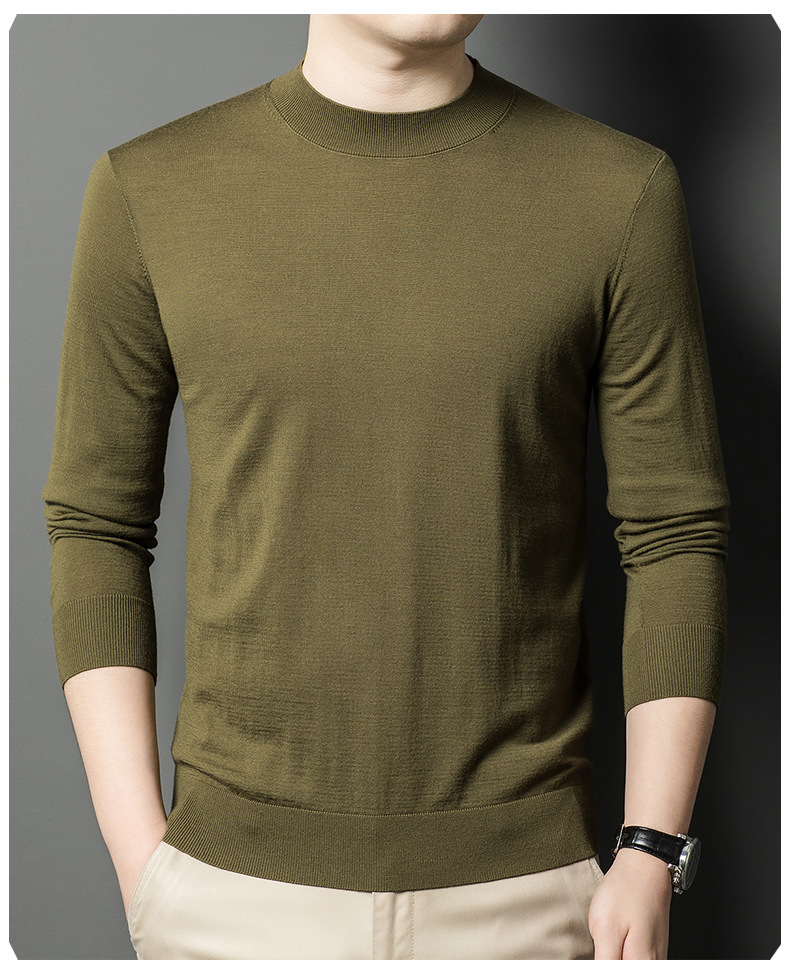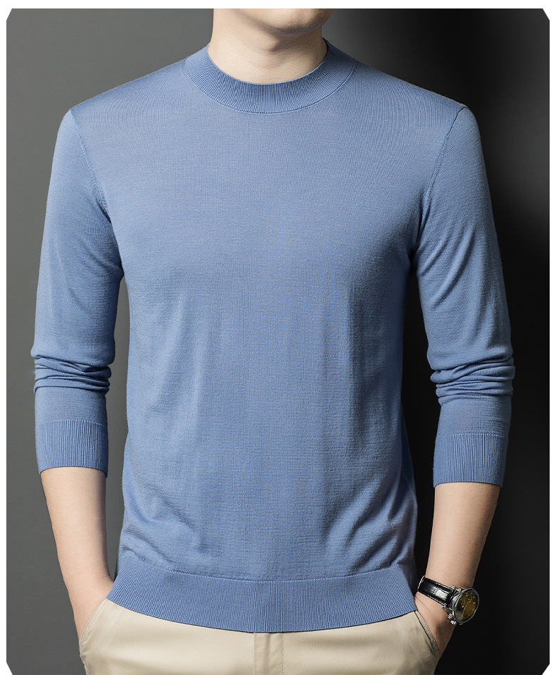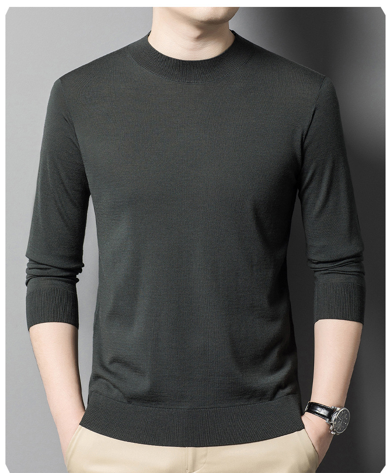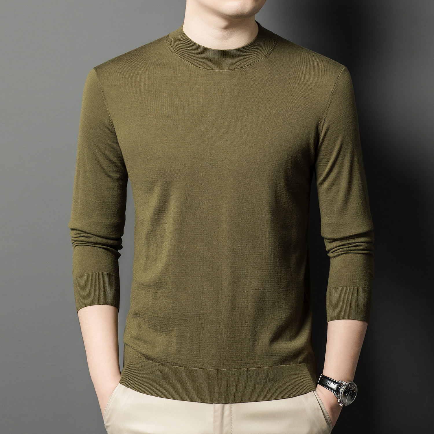 【80수 고급스판】바술란 울 스웨터, 세탁기 사용 가능, 남성용 초박형 긴팔 반하이넥 니트