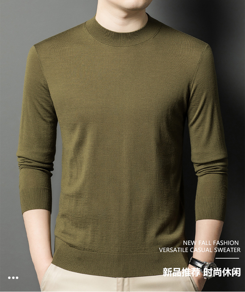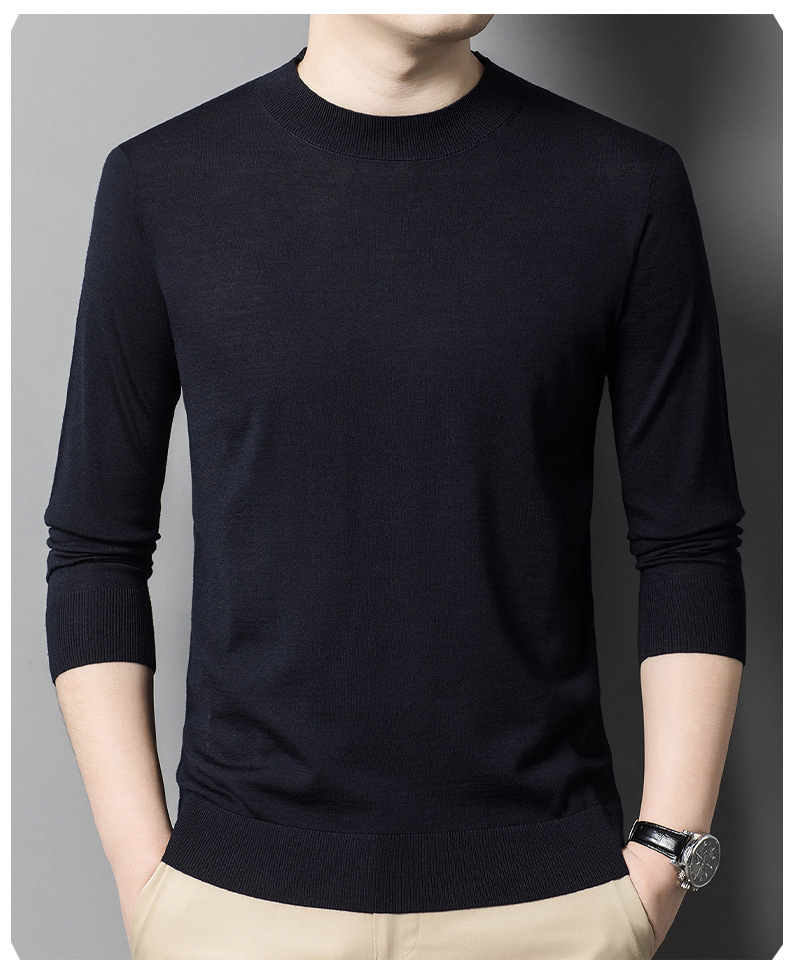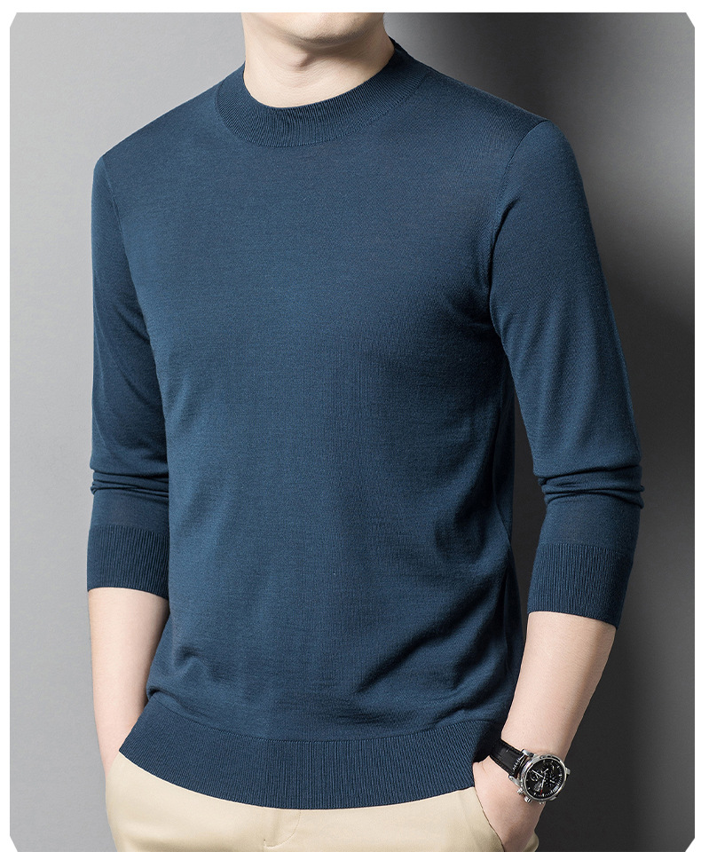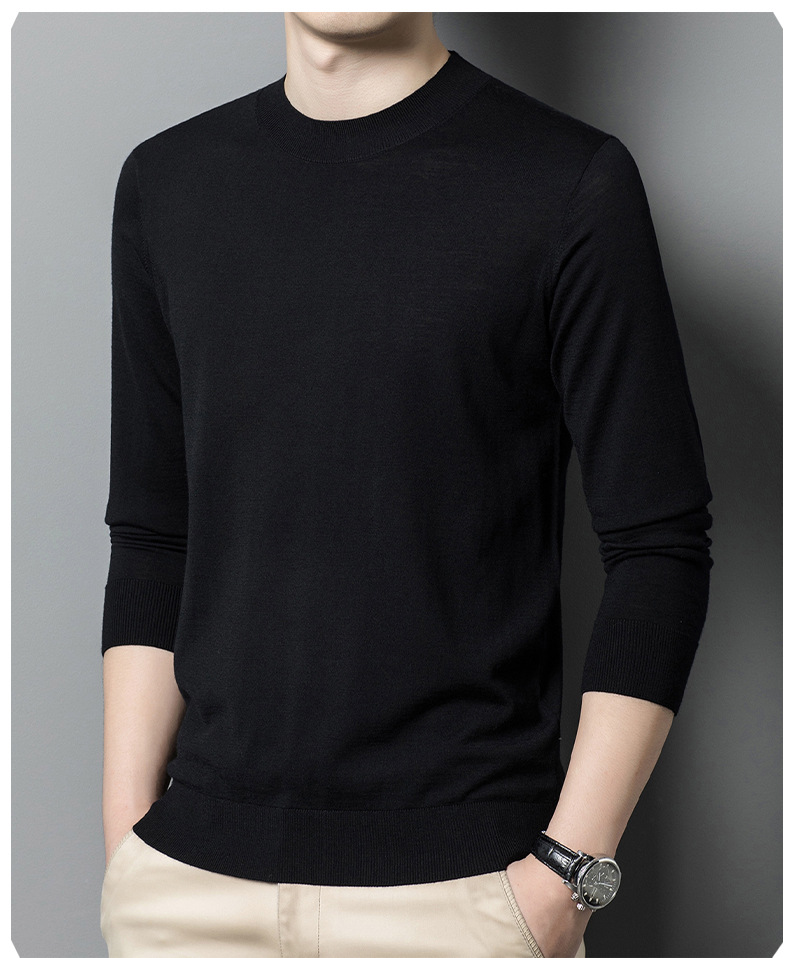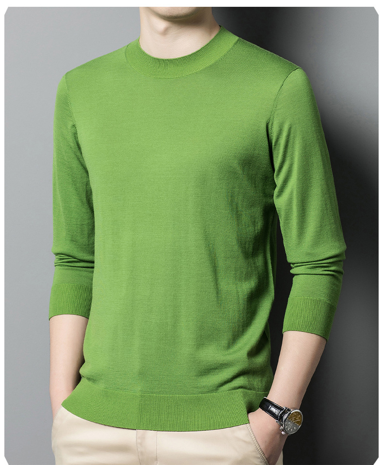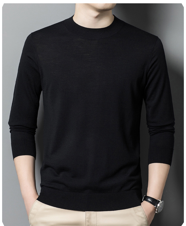 【80수 고급스판】바술란 울 스웨터, 세탁기 사용 가능, 남성용 초박형 긴팔 반하이넥 니트