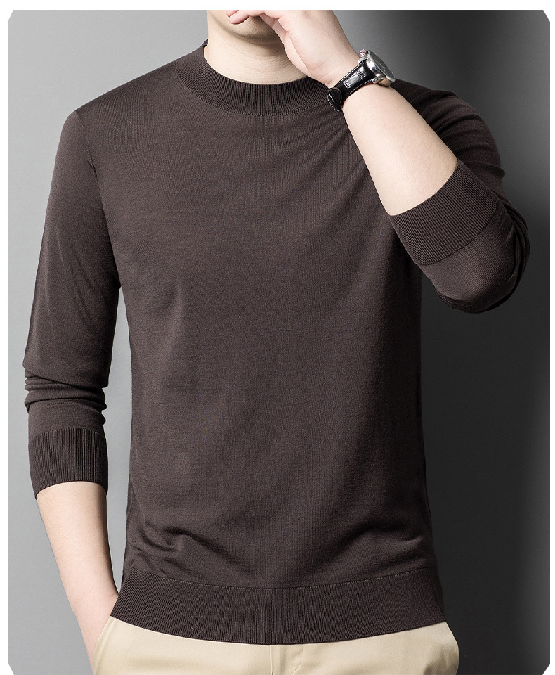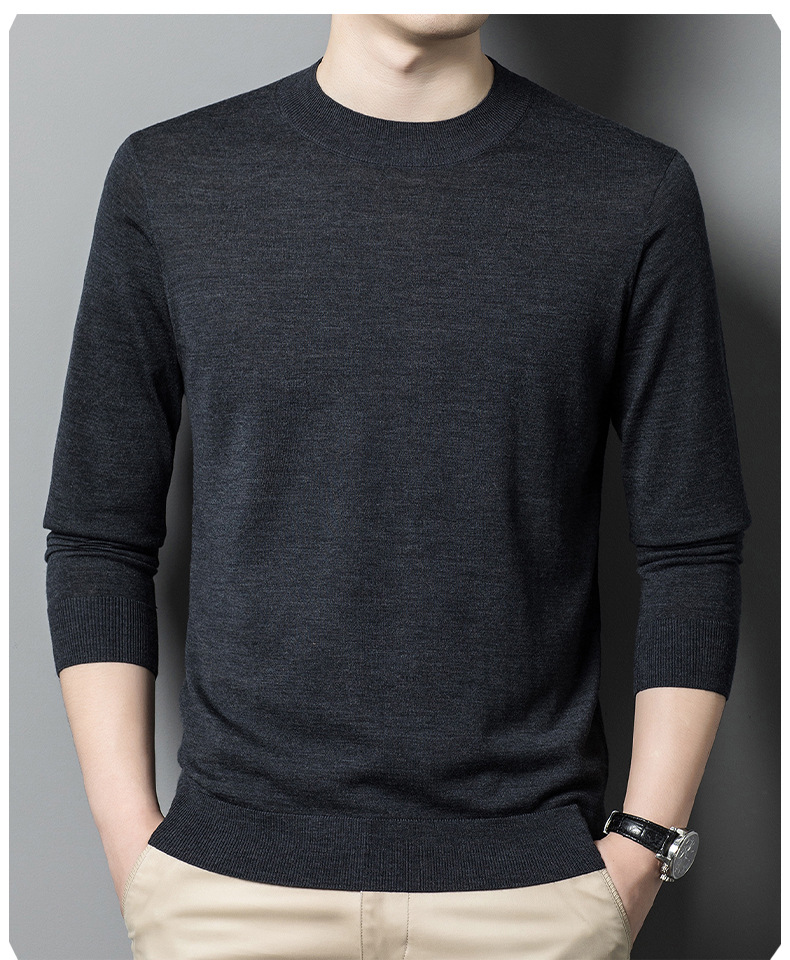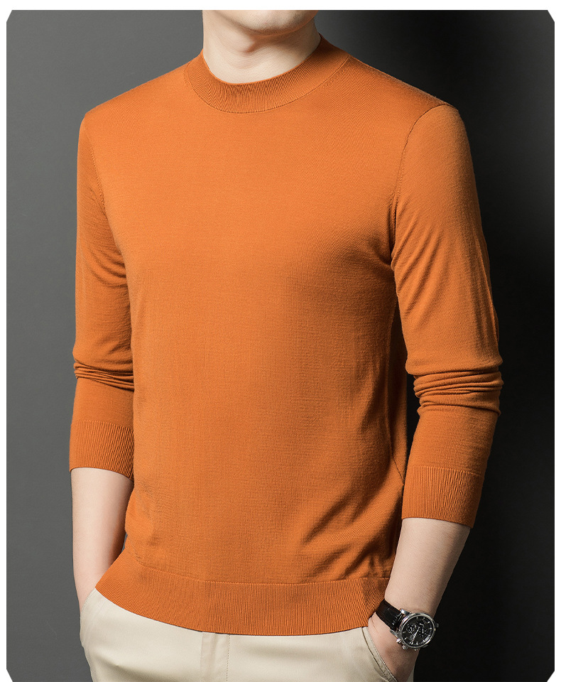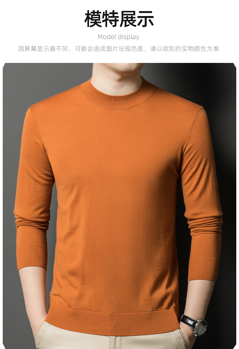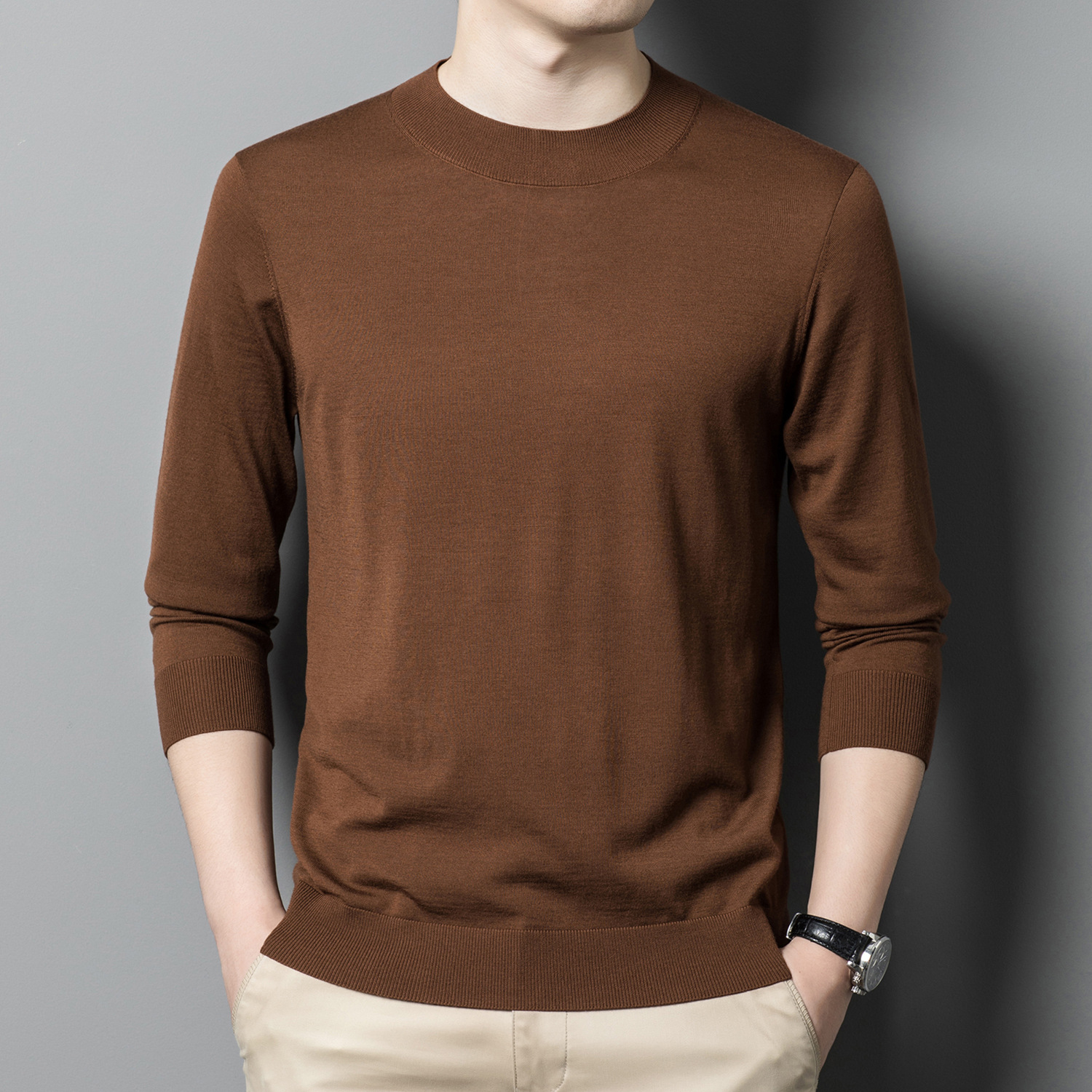 【80수 고급스판】바술란 울 스웨터, 세탁기 사용 가능, 남성용 초박형 긴팔 반하이넥 니트