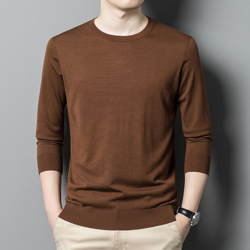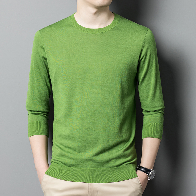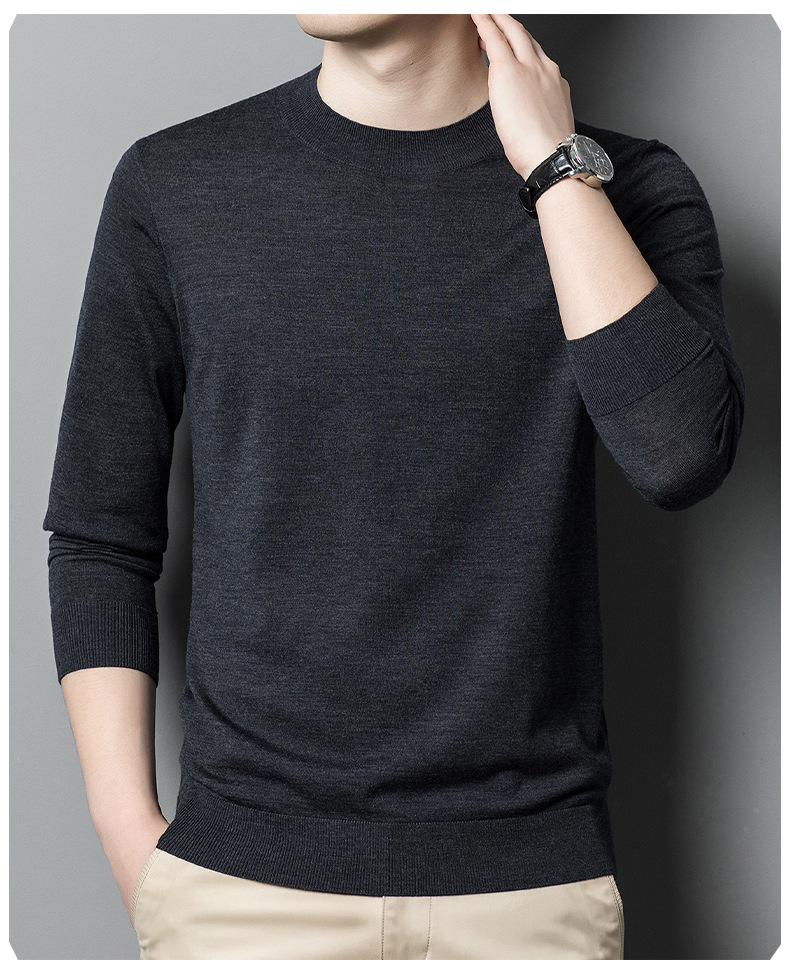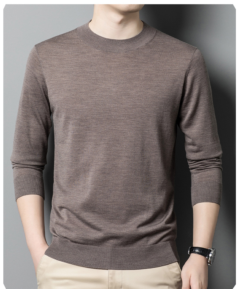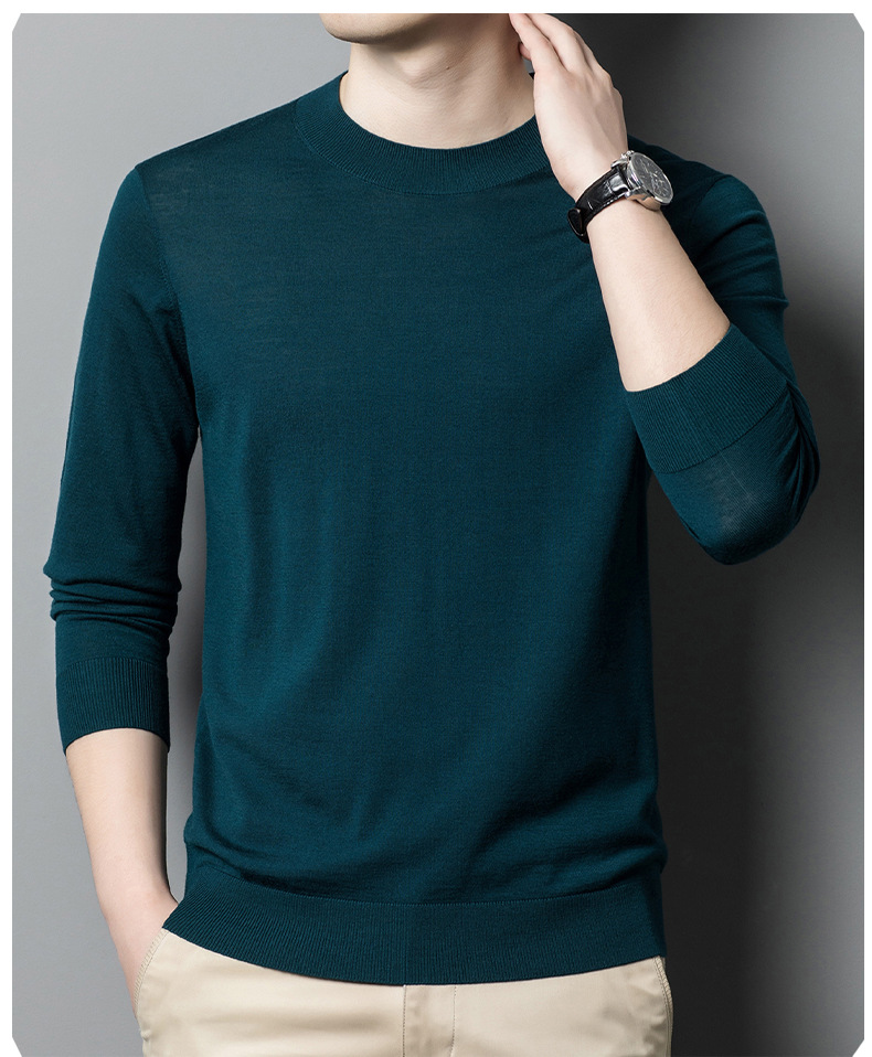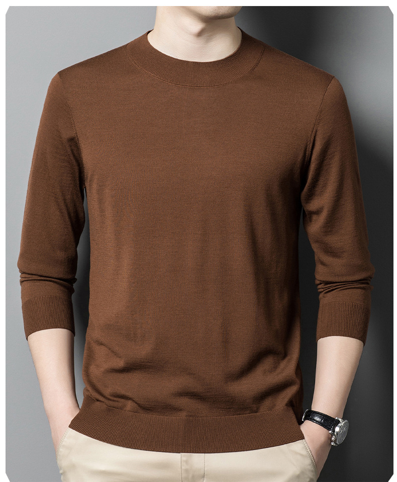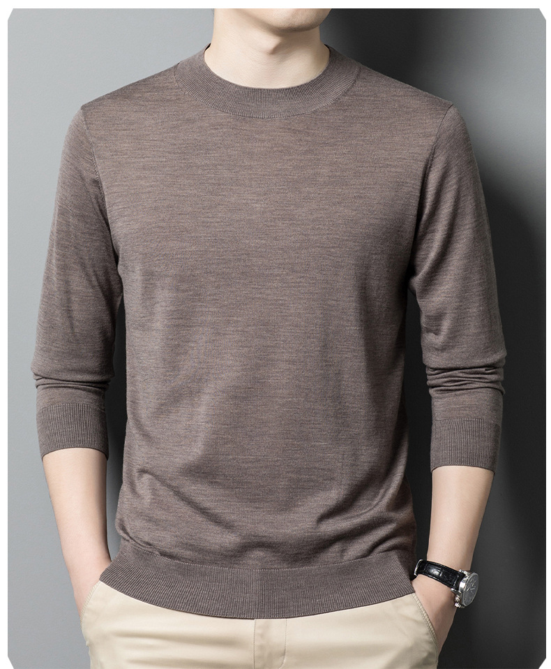 【80수 고급스판】바술란 울 스웨터, 세탁기 사용 가능, 남성용 초박형 긴팔 반하이넥 니트