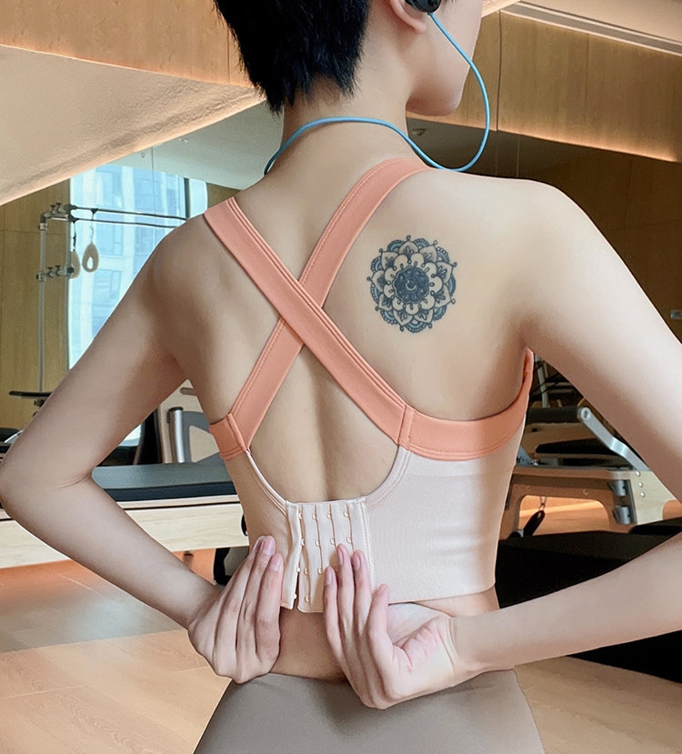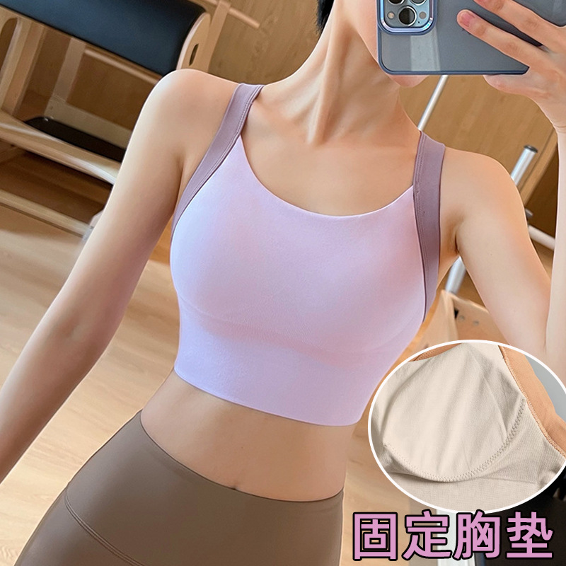 LuLu 원피스 원활한 스포츠 속옷 여성의 대비 컬러 벨트 가슴 패드 뷰티 백 피트니스 요가 옷 브래지어 고정 EBB스토어 가기
