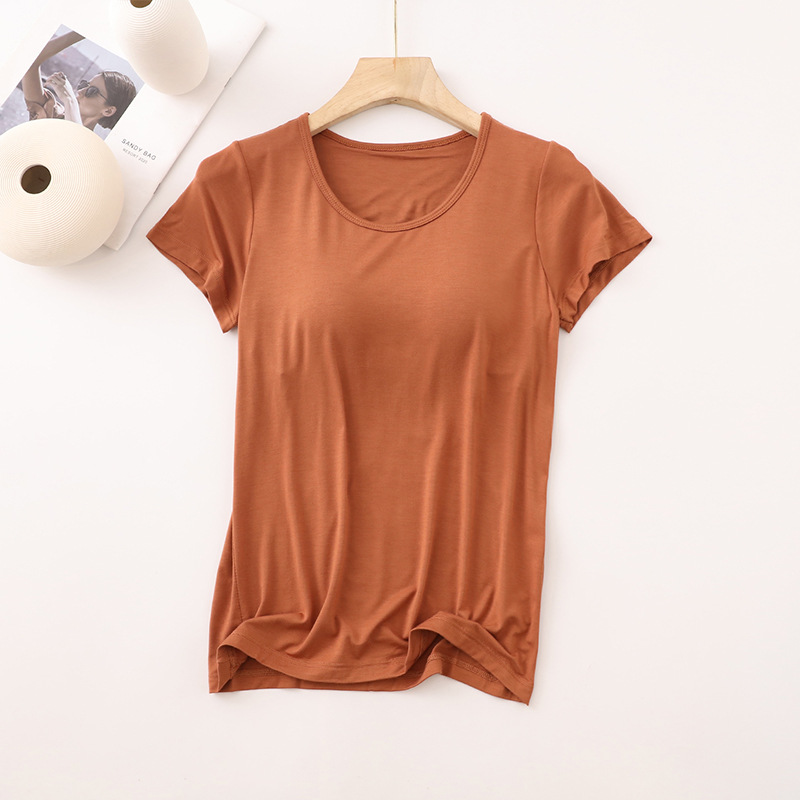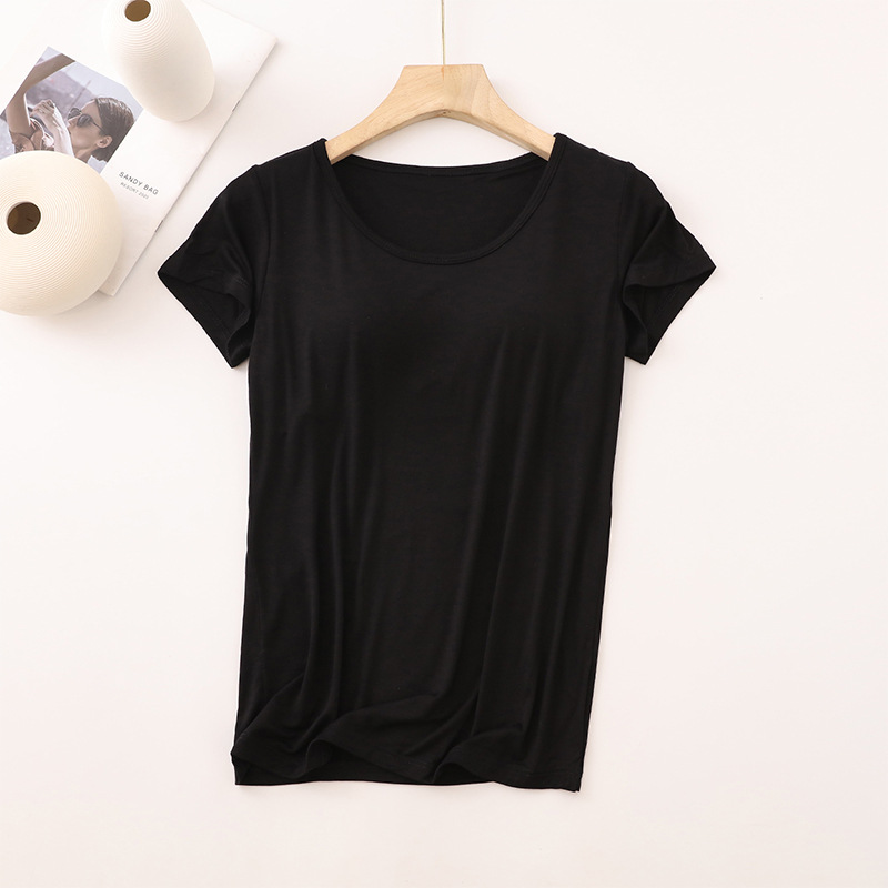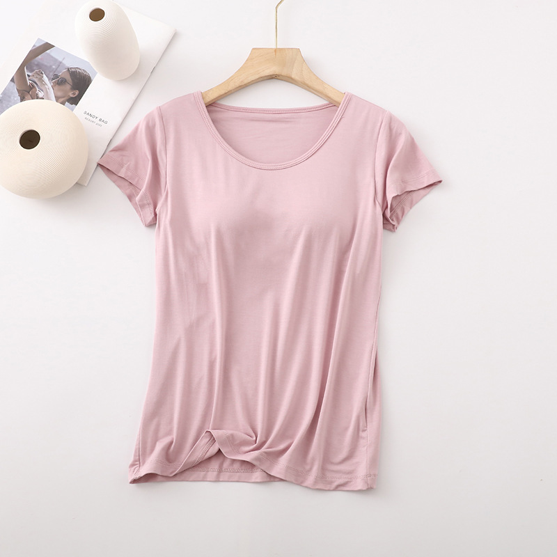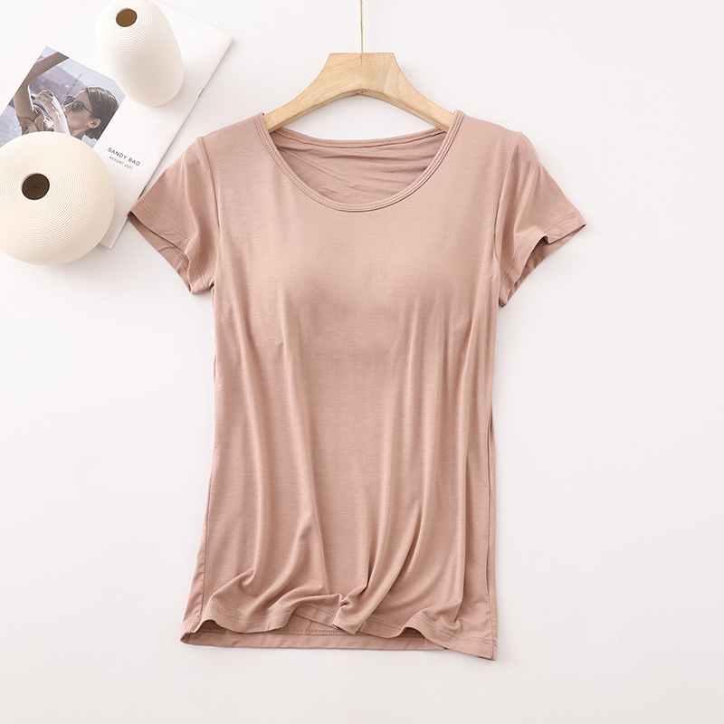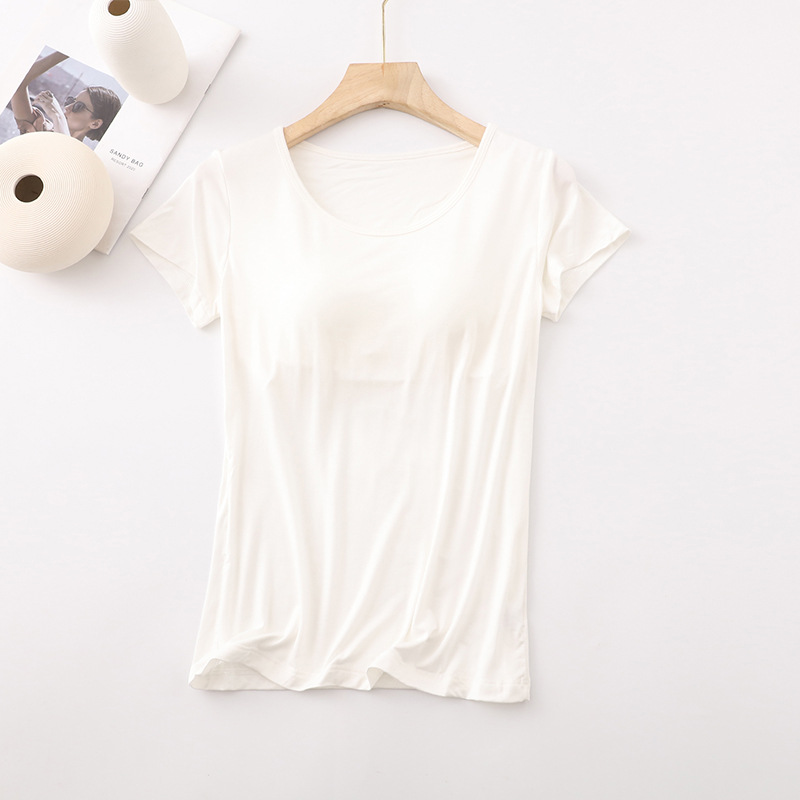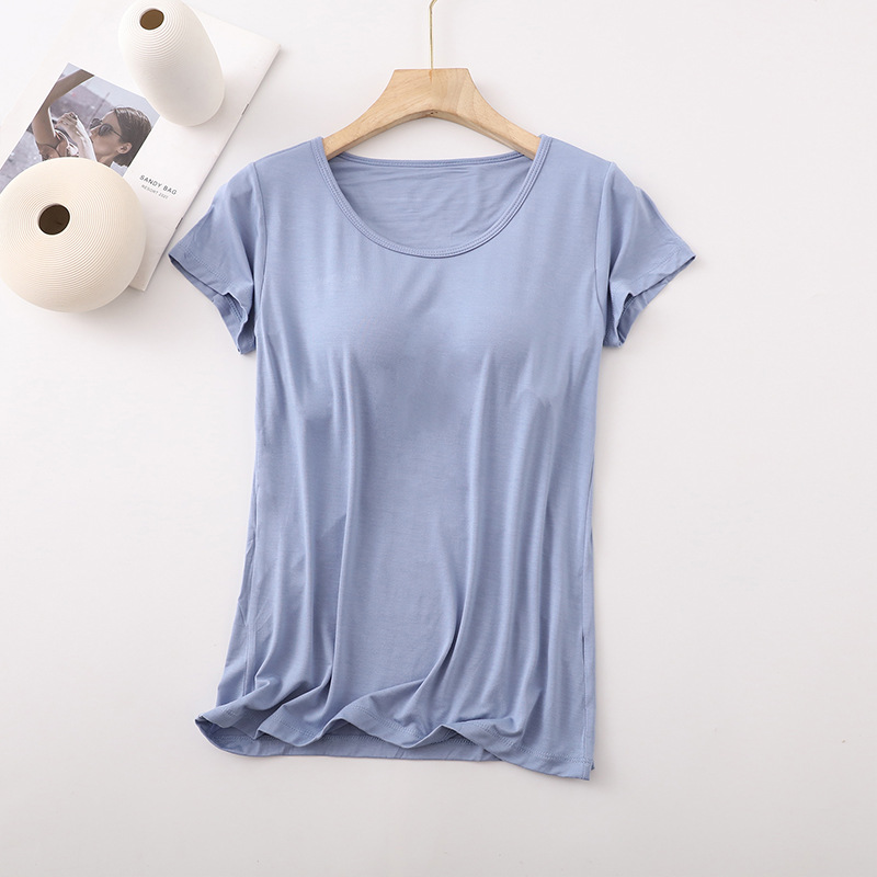 가슴 패드가 있는 여성용 반팔 모달 바닥 셔츠, 여성용 봄 여름 올인원 잠옷, 다섯 손가락 반팔 여성 의류스토어 가기