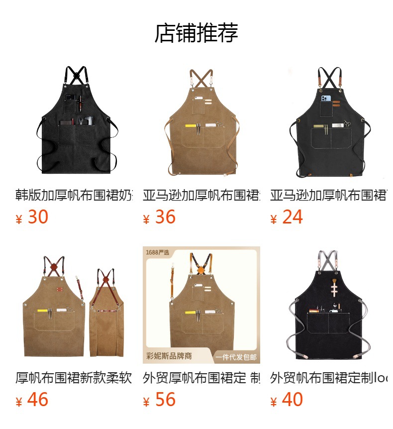국경 간 아마존 두꺼운 캔버스 앞치마 우유 차 가게 커피 숍 이발사 작업복 레스토랑 주방 앞치마 도매스토어 가기