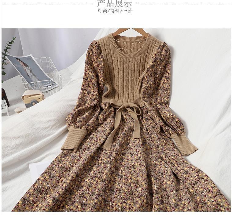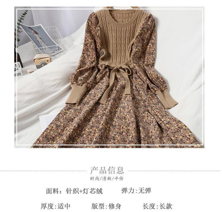 2025 가을 겨울 신상품, 나이를 줄여주는 스플라이싱 스트랩 슬림 니트 롱 스커트, 다용도 코듀로이 플로럴 원피스 여성용스토어 가기