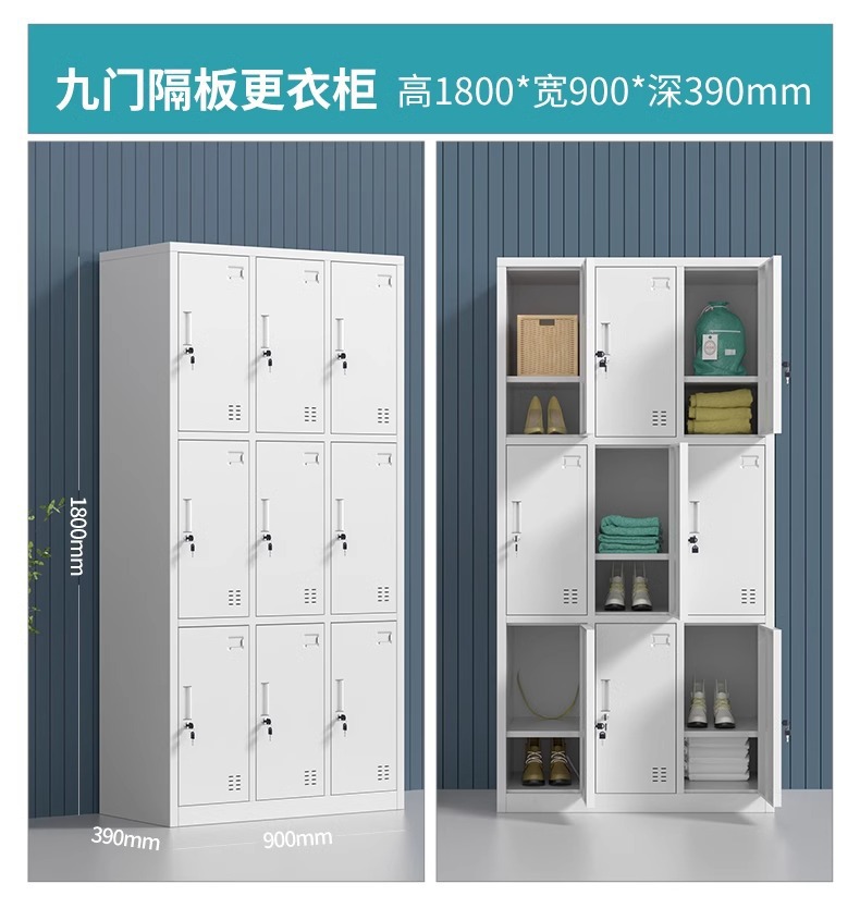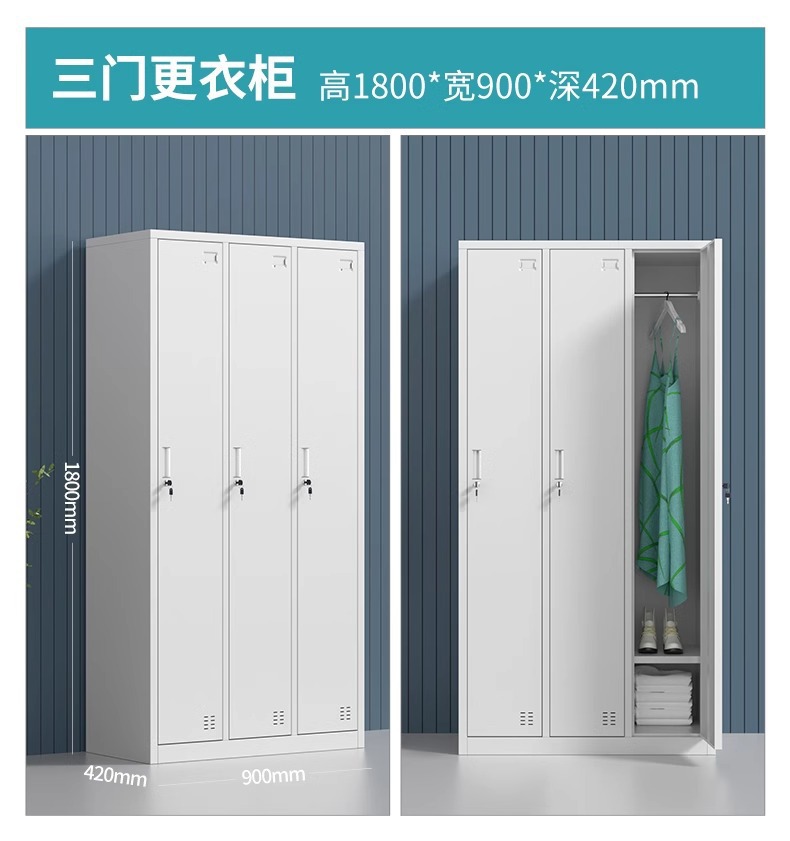 직원용 사물함, 철제 보관함, 체육관용 철제 3도어 사물함, 욕실용 다문 철제 캐비닛스토어 가기