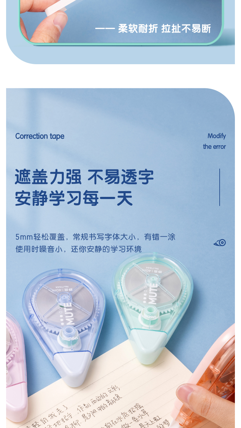 델리 음소거 교정 테이프 학생들은 대용량 교정 테이프를 사용합니다. 일본의 높은 색상 가치