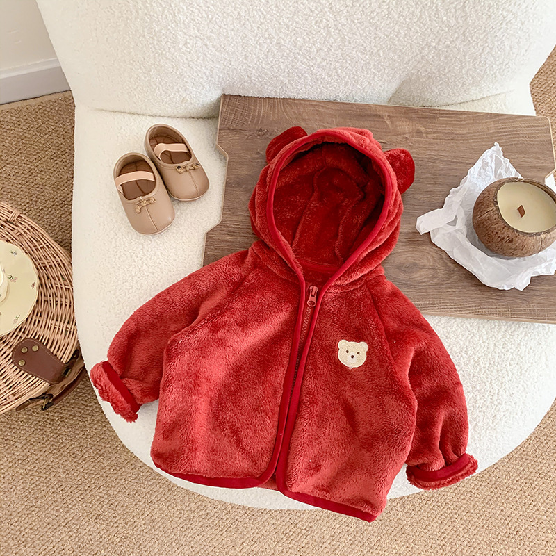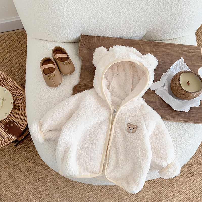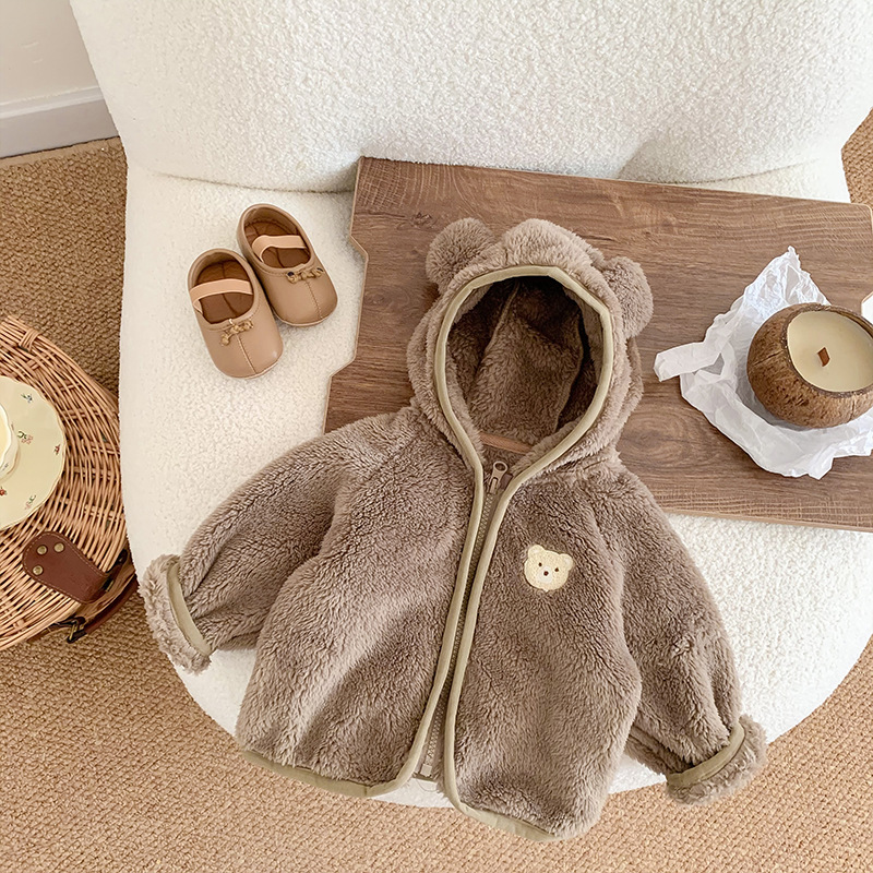 어린이 겨울 모피 코트 아기 귀여운 곰 후드 카디건 코튼 코트 신생아 옷