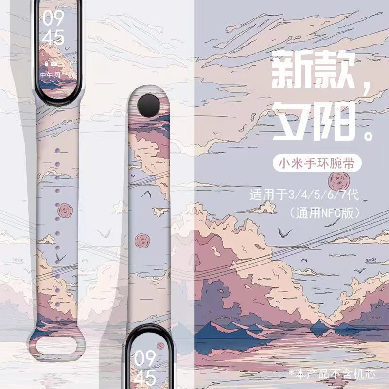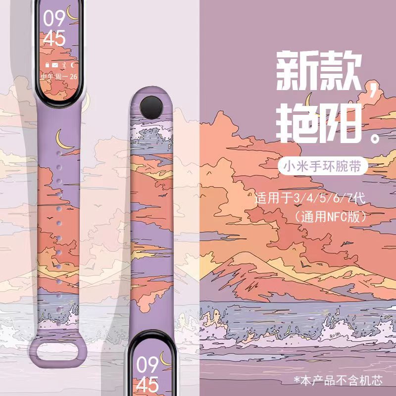 [뉴 비치] Mi Band 6 세대 팔찌 7 세대 프린트 스트랩 3/4/5 세대 nfc 교체 스트랩에 적용 가능