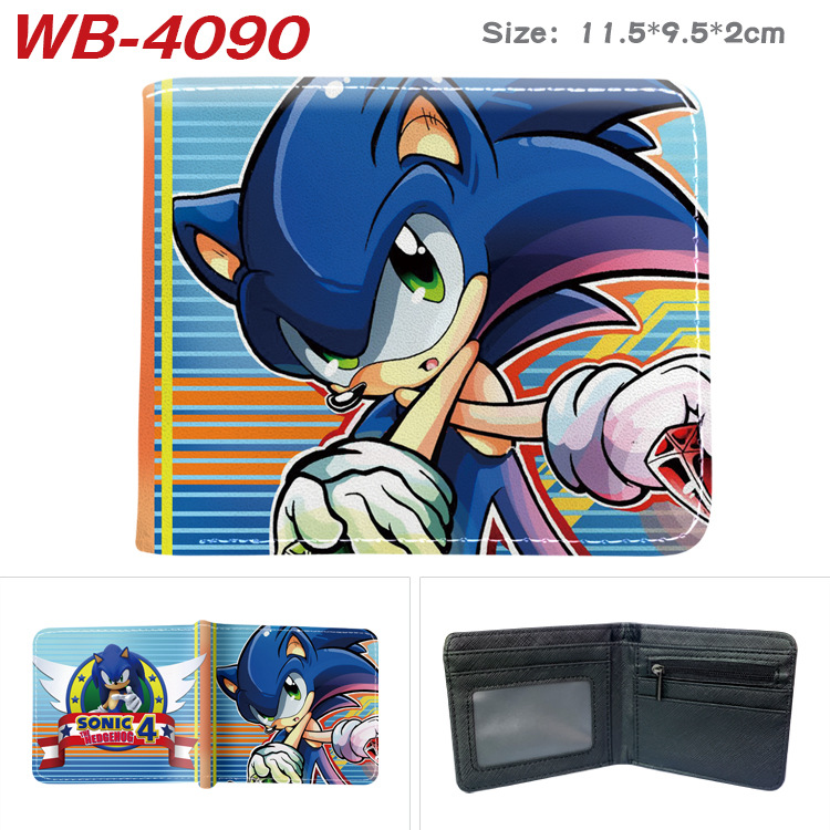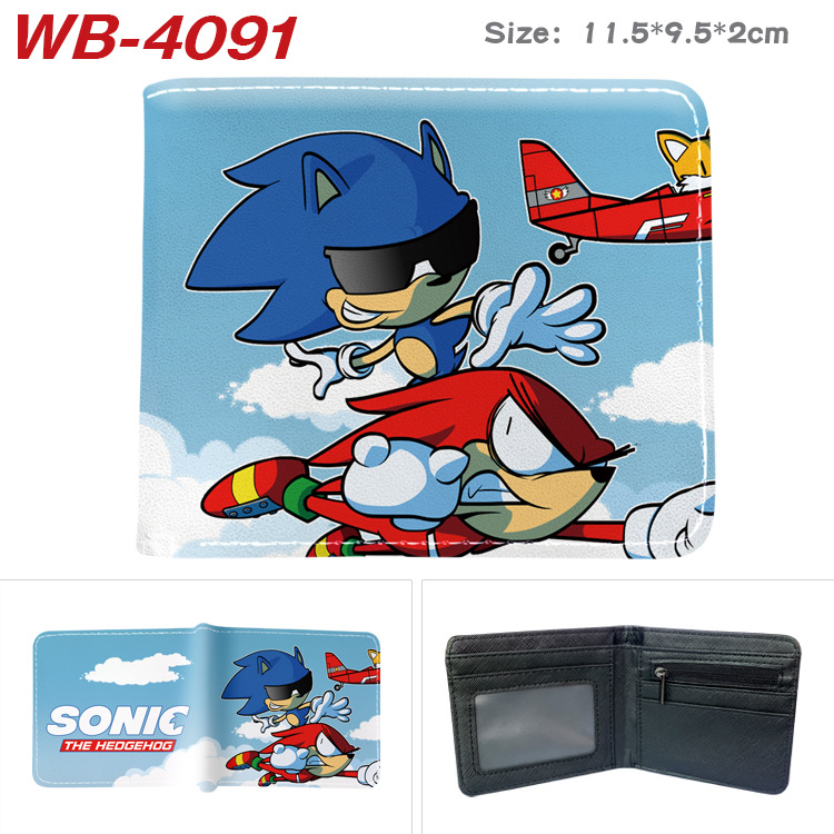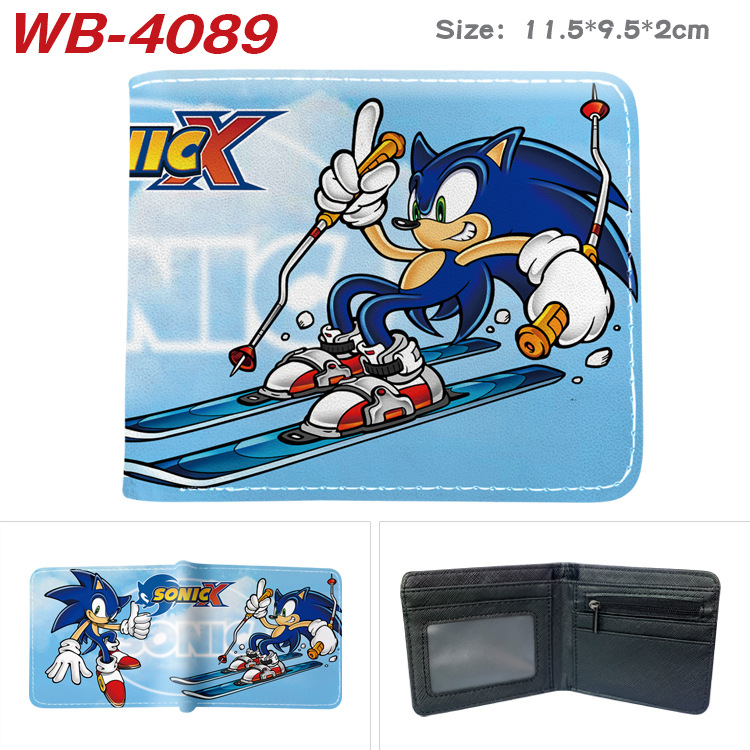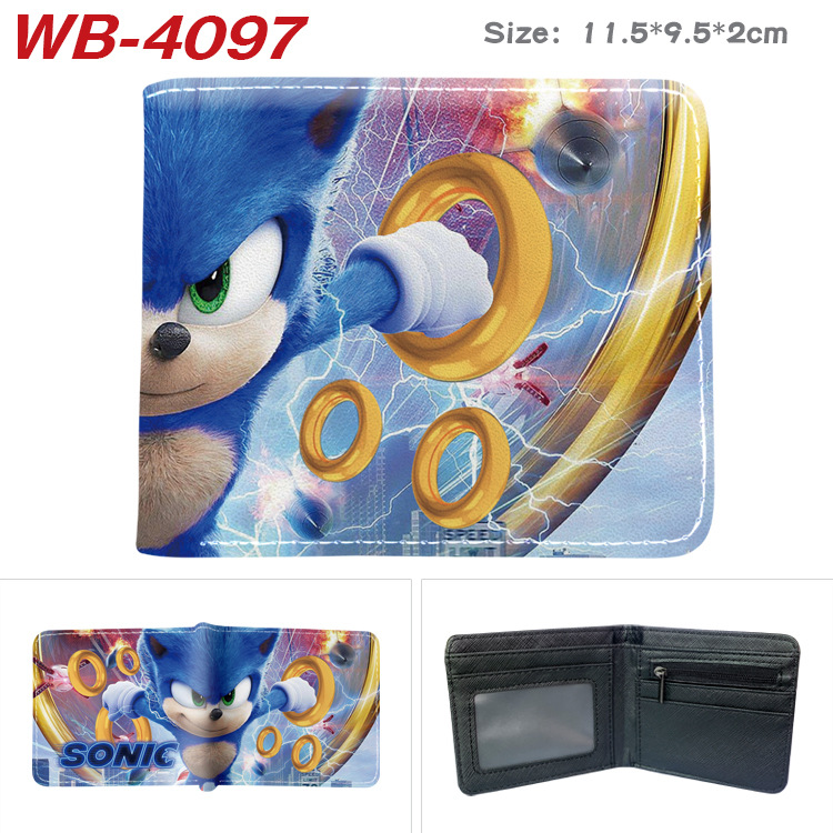 소닉 마우스 소닉 주변기기 풀 컬러 인쇄 짧은 가죽 지갑 접는 지갑 애니메이션 만화 동전 지갑 티켓 홀더스토어 가기