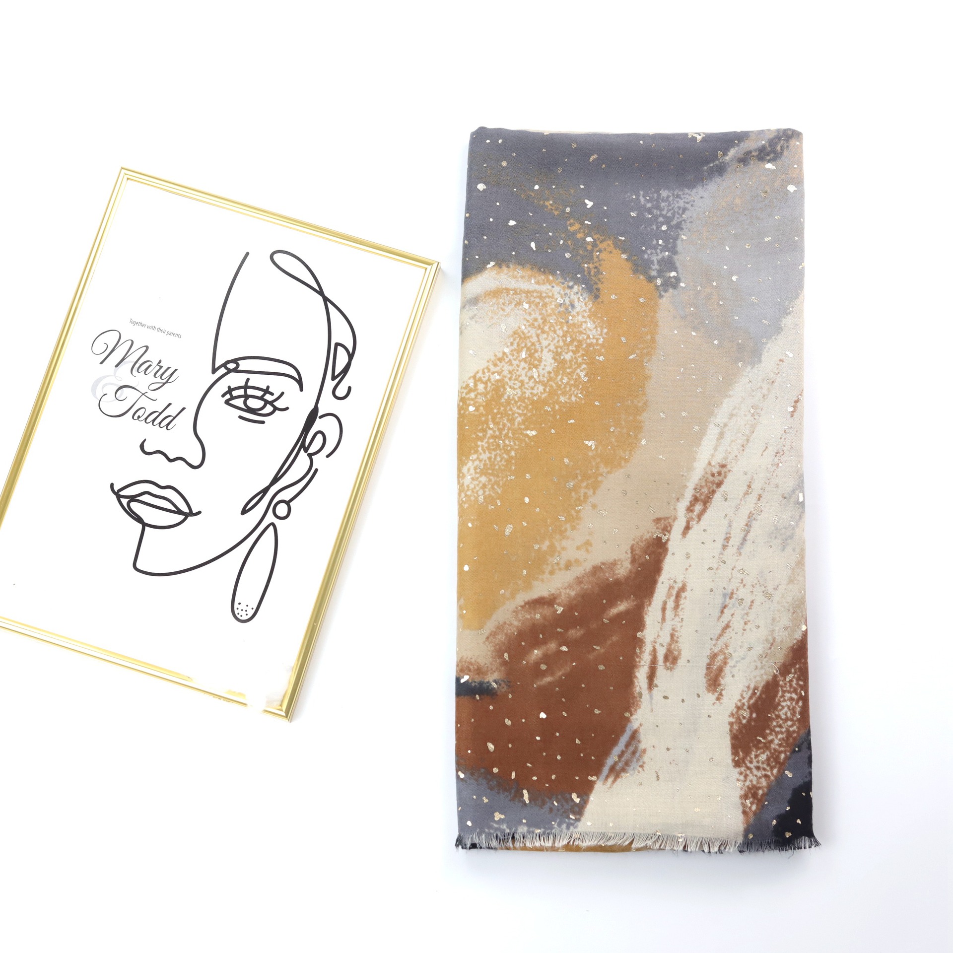 공장 판매 크로스 보더 라이브 브론징 추상 그라데이션 롱 스카프 새틴 코튼 여성 가을과 겨울 스카프 면과 린넨 손 자외선 차단제 숄