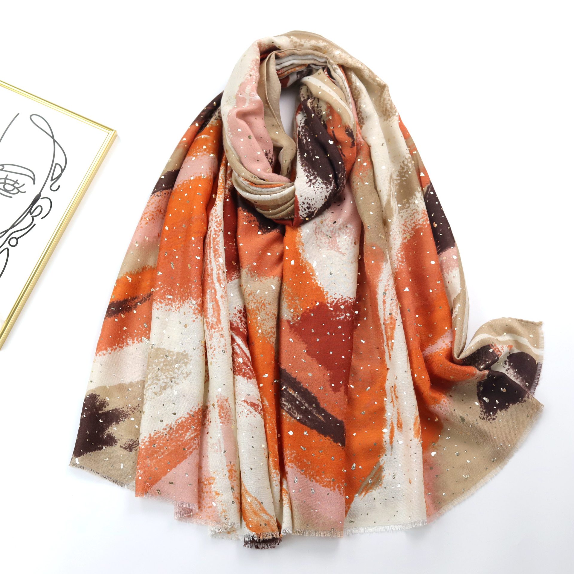 공장 판매 크로스 보더 라이브 브론징 추상 그라데이션 롱 스카프 새틴 코튼 여성 가을과 겨울 스카프 면과 린넨 손 자외선 차단제 숄스토어 가기