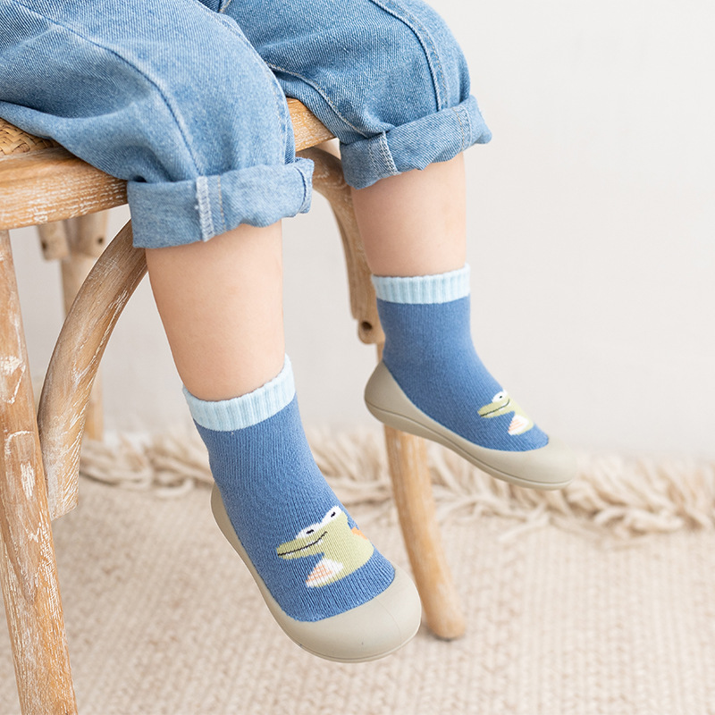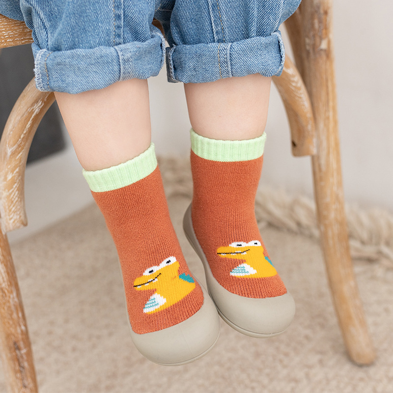 소년과 소녀를위한 가을과 겨울 아기 실내 및 실외 시원한 바닥 신발 테리 두꺼운 따뜻한 양말 신발 어린이 패션 만화스토어 가기
