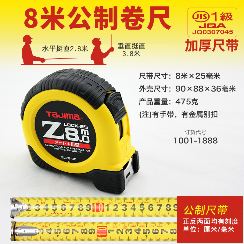 티안다오 줄자 ZLOCK 시리즈 5.5 m 8m 고정밀 내마모성 낙하 방지 안전 버클 두꺼운 테이프 자동 잠금