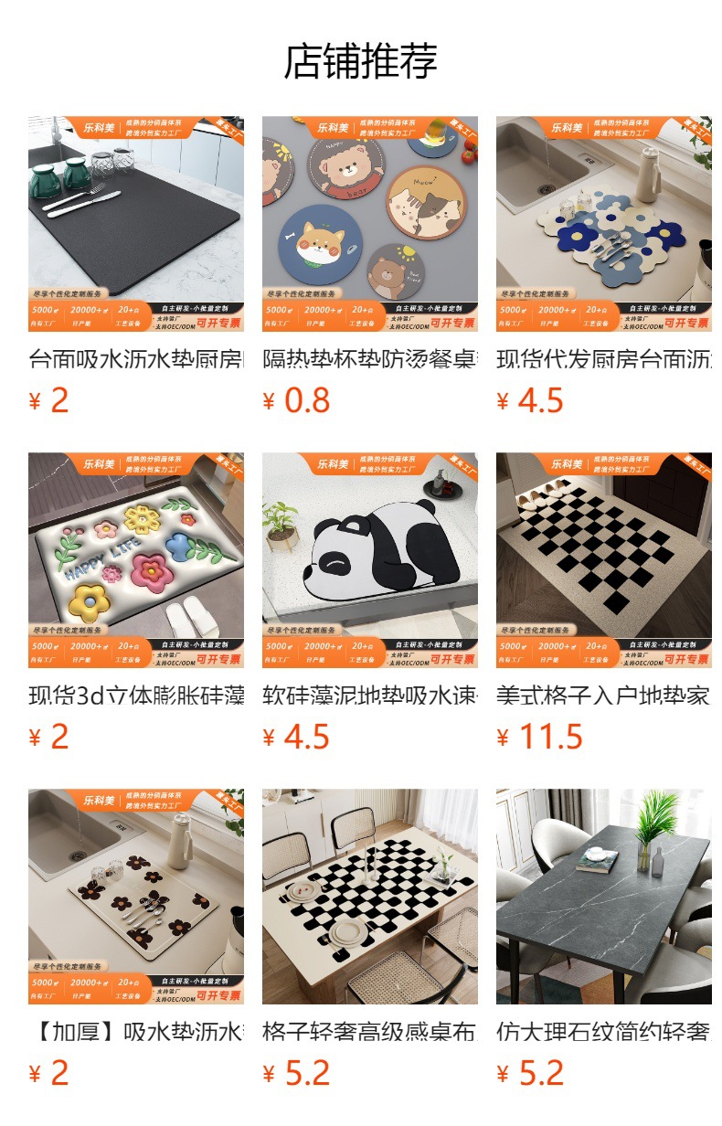 규조 진흙 매트 욕실 현관 카펫 욕실 흡수 매트 도매 미끄럼방지 매트의 국경 간 발전스토어 가기