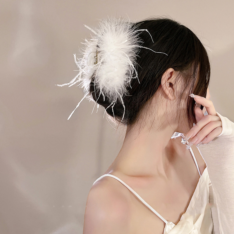 순수한 욕망 ~ 깃털 그립 클립 in 바람 타조 머리핀 백 헤드 슈퍼 요정 헤어 액세서리 고급 감각 클립 모피 상어 클립