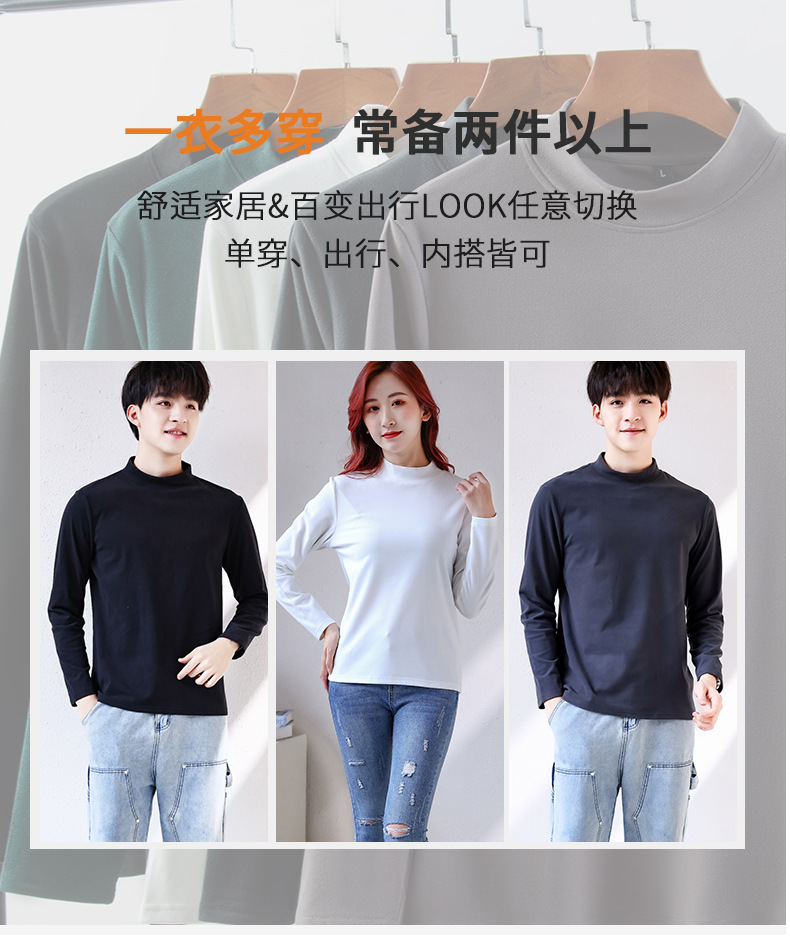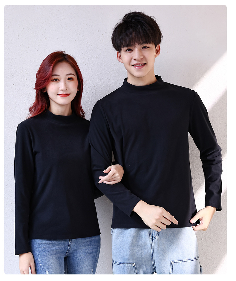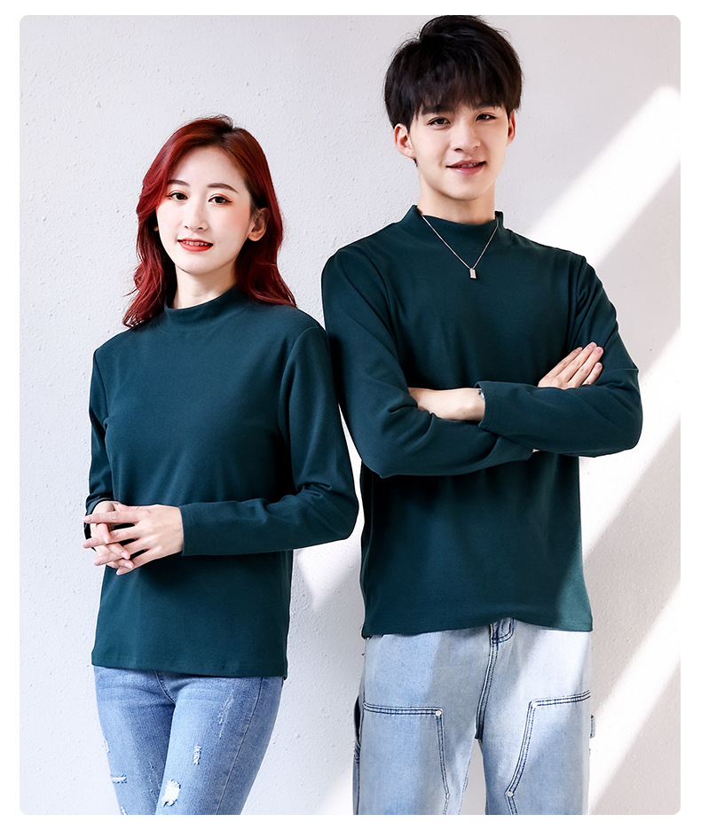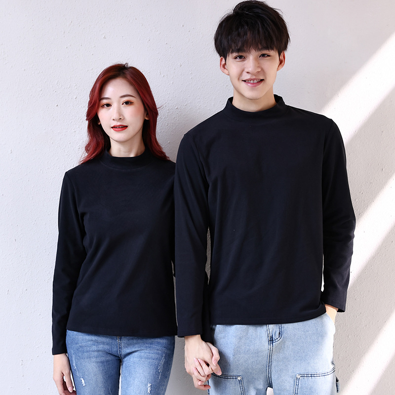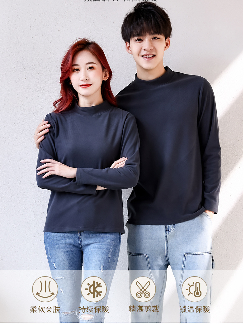 가을과 겨울 남성용 여성용 따뜻한 베이스 셔츠 미드 칼라 양면 양털 브러시 하프 하이 칼라 열 속옷 베이스 탑