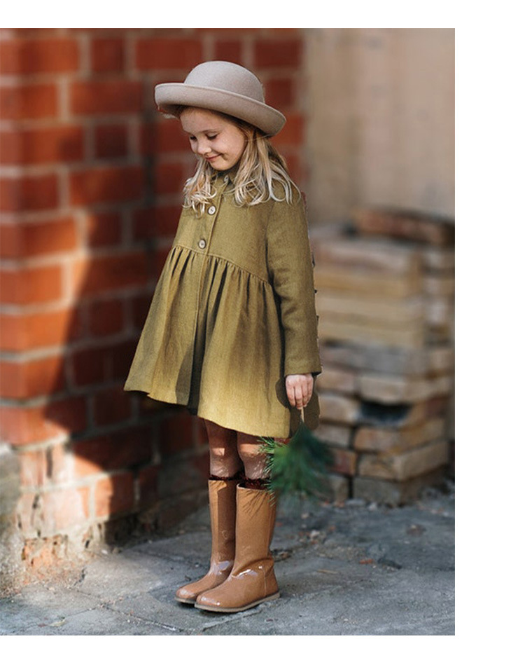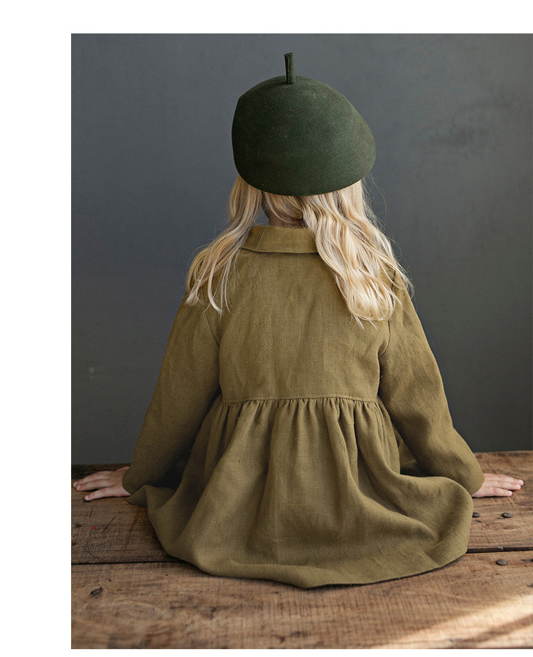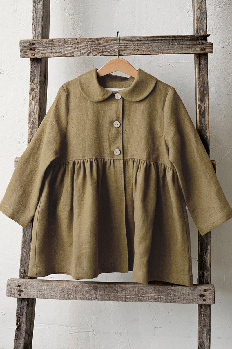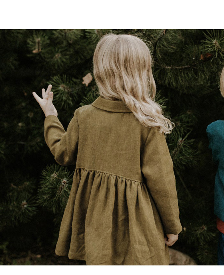 26년 가을 신상품 인형 칼라 면마 소재 여아 코트, 숲속 공주풍 허리 주름 장식 밑단 긴팔 여아 원피스