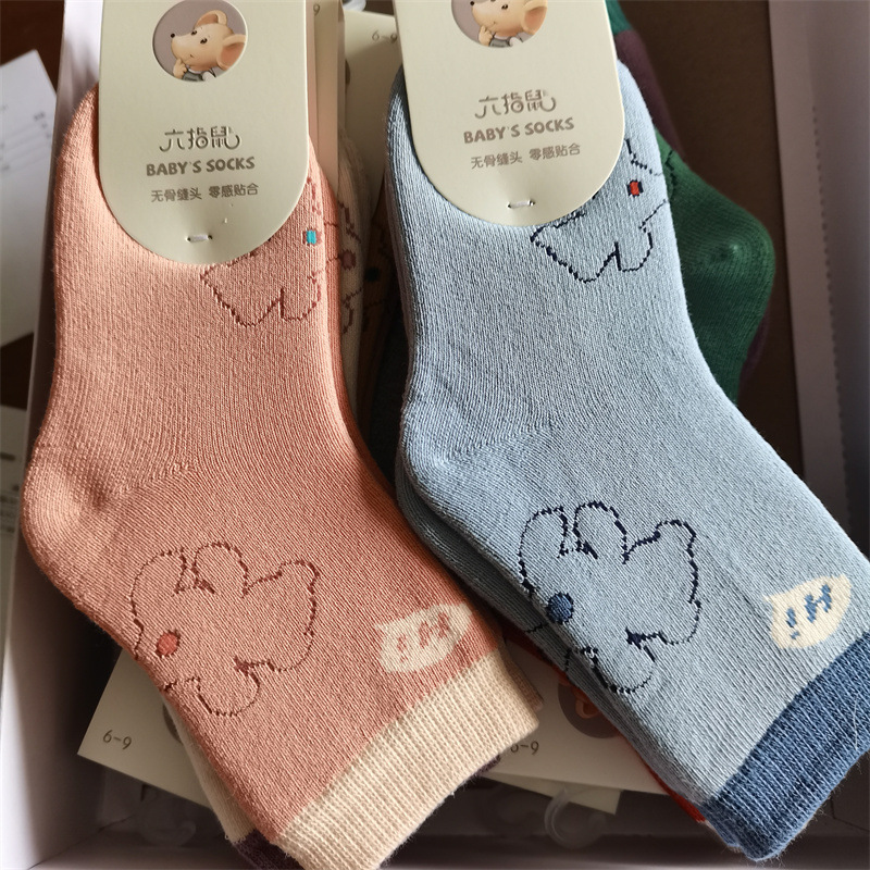 육지손쥐 어린이 겨울용 두꺼운 테리 양말 중간 길이 무봉제 남녀공용 보온 두꺼운 면 양말 0-15세스토어 가기