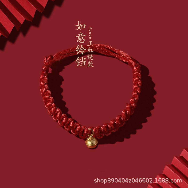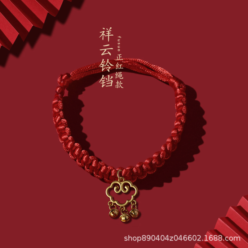 애완 동물 고양이 개 목걸이 새해 빨간 목걸이 손으로 짠 만화 벨 보석 조정 가능한 빨간 밧줄 테디스토어 가기