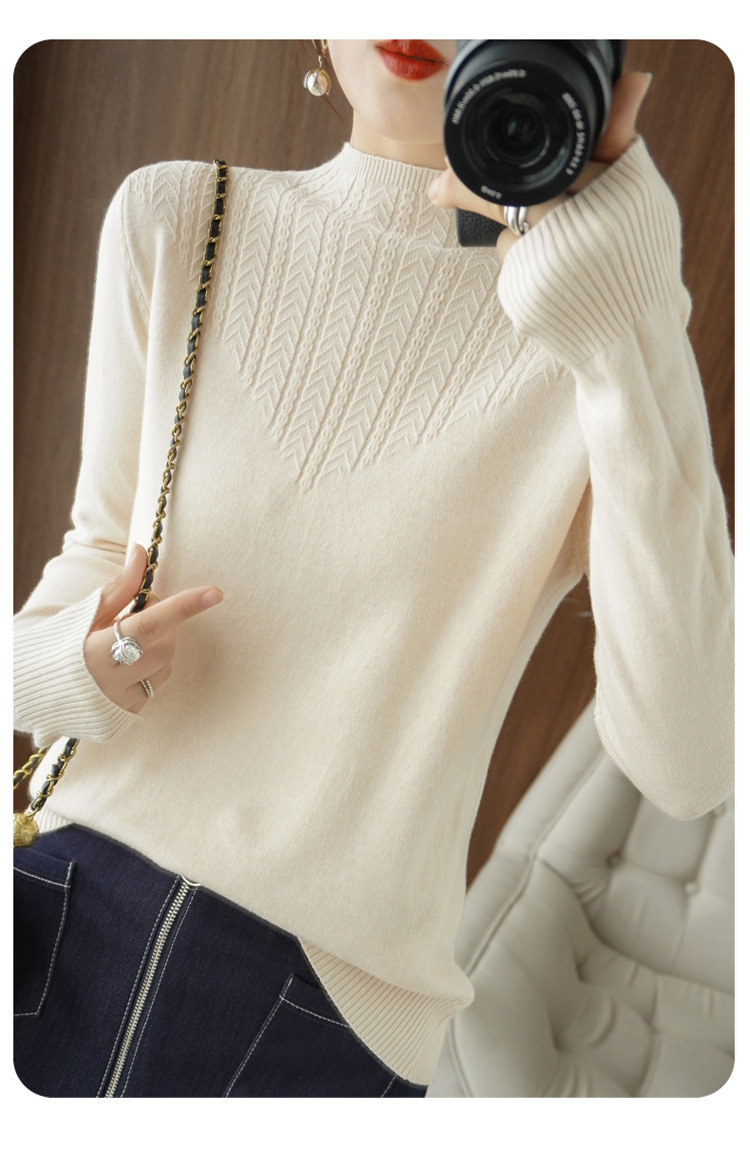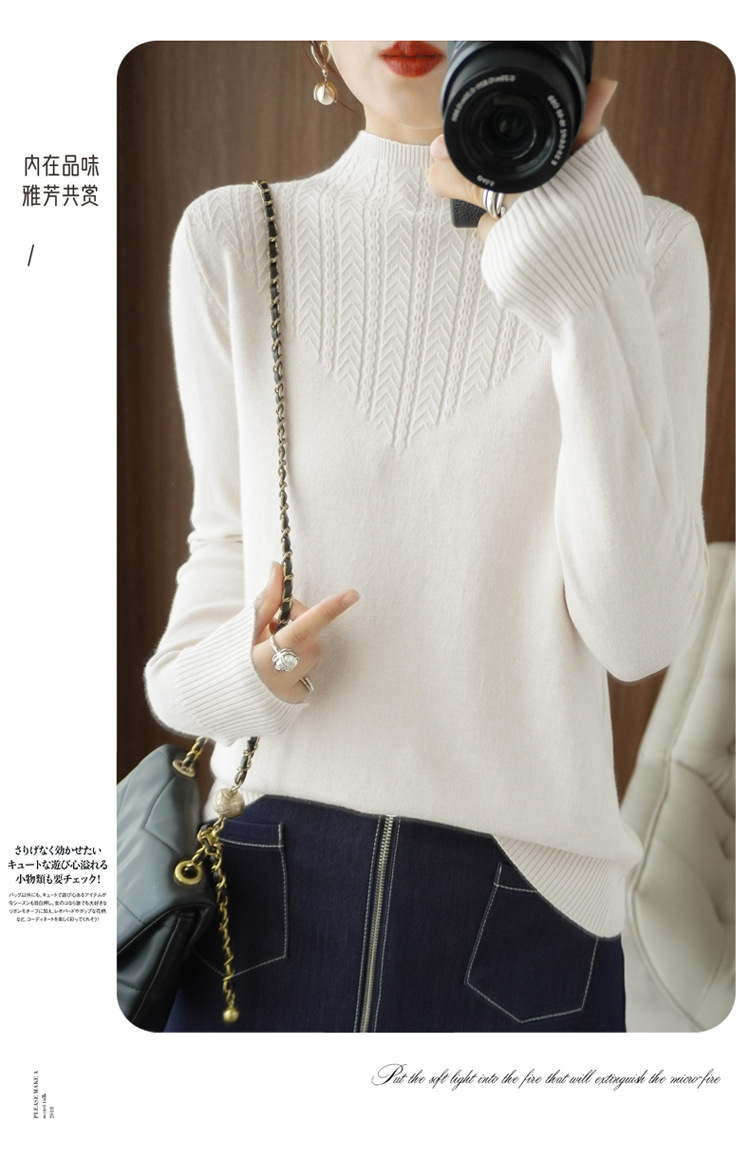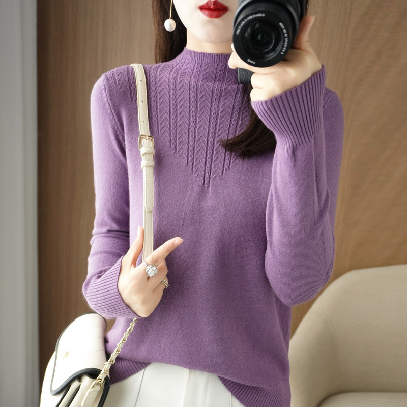 이른 가을 최고 여성의 새로운 얇은 반 터틀넥 긴 소매 니트 바닥 셔츠 짧은 느슨한 내부 스웨터 탑스토어 가기