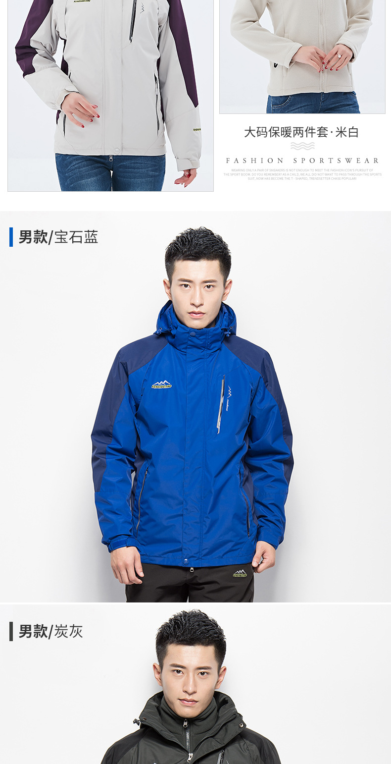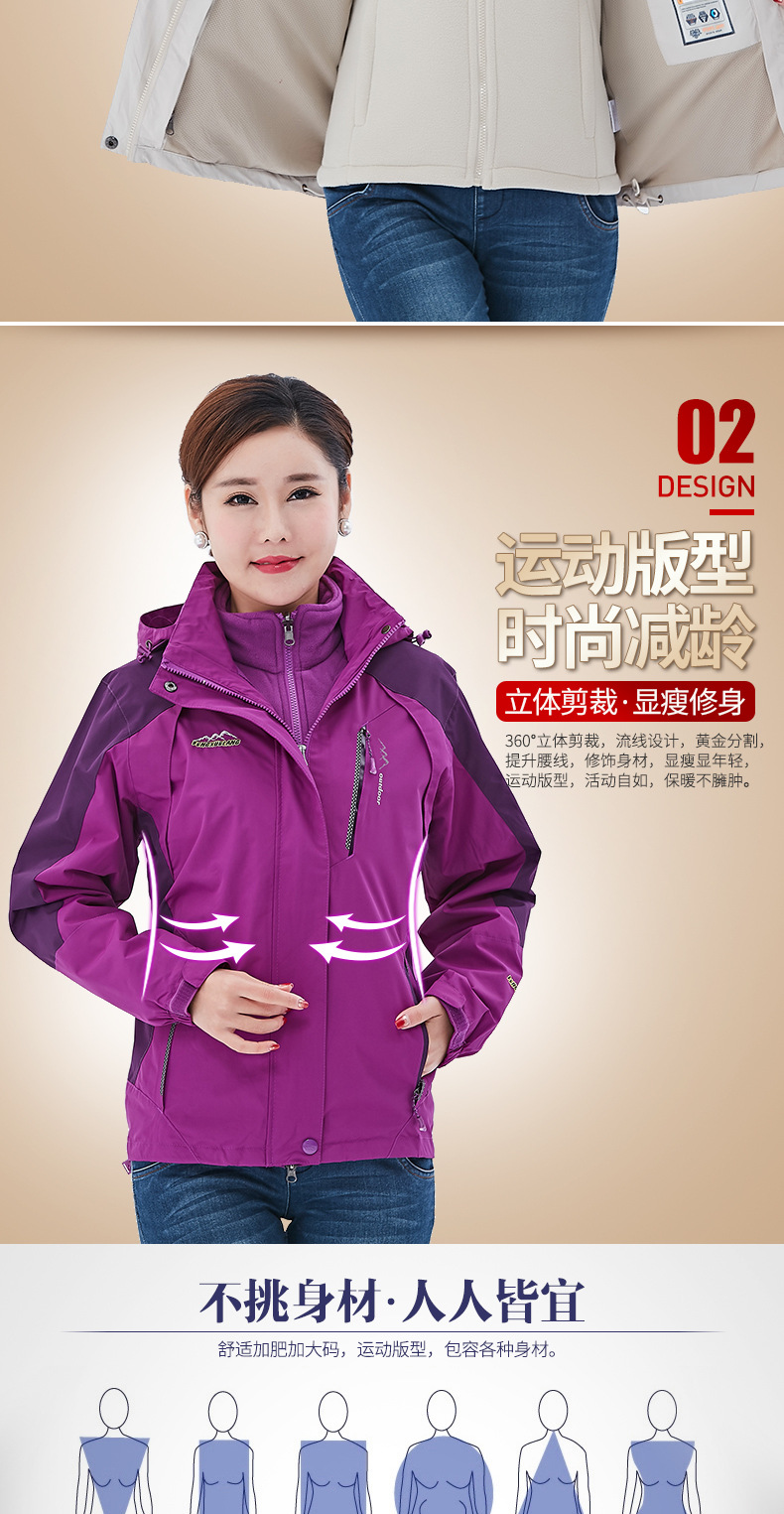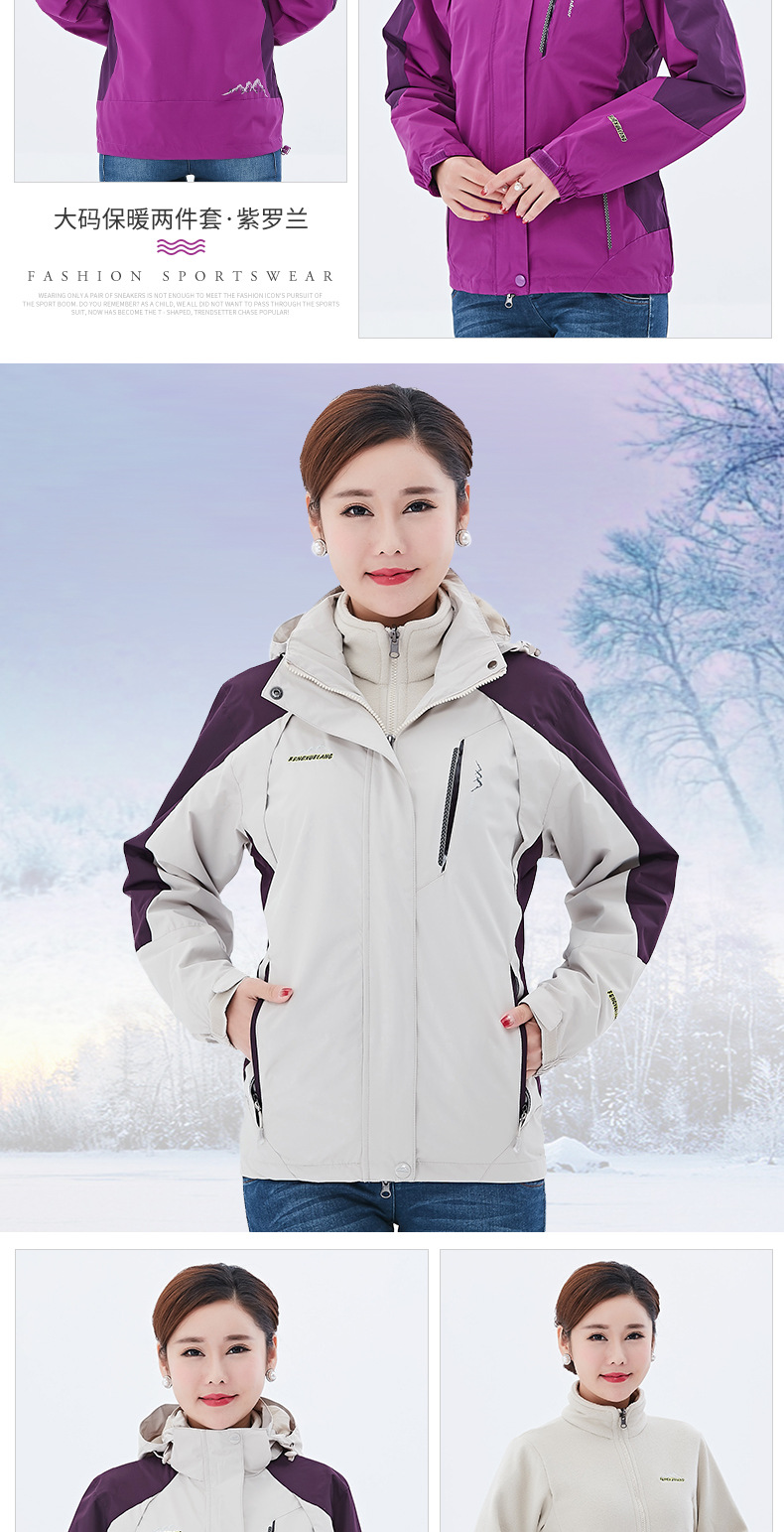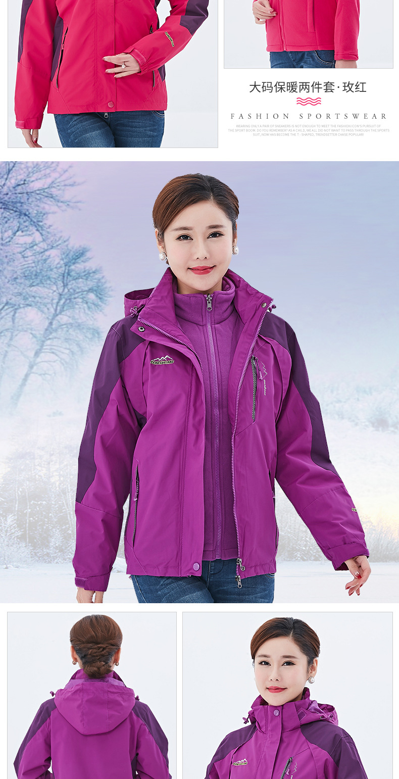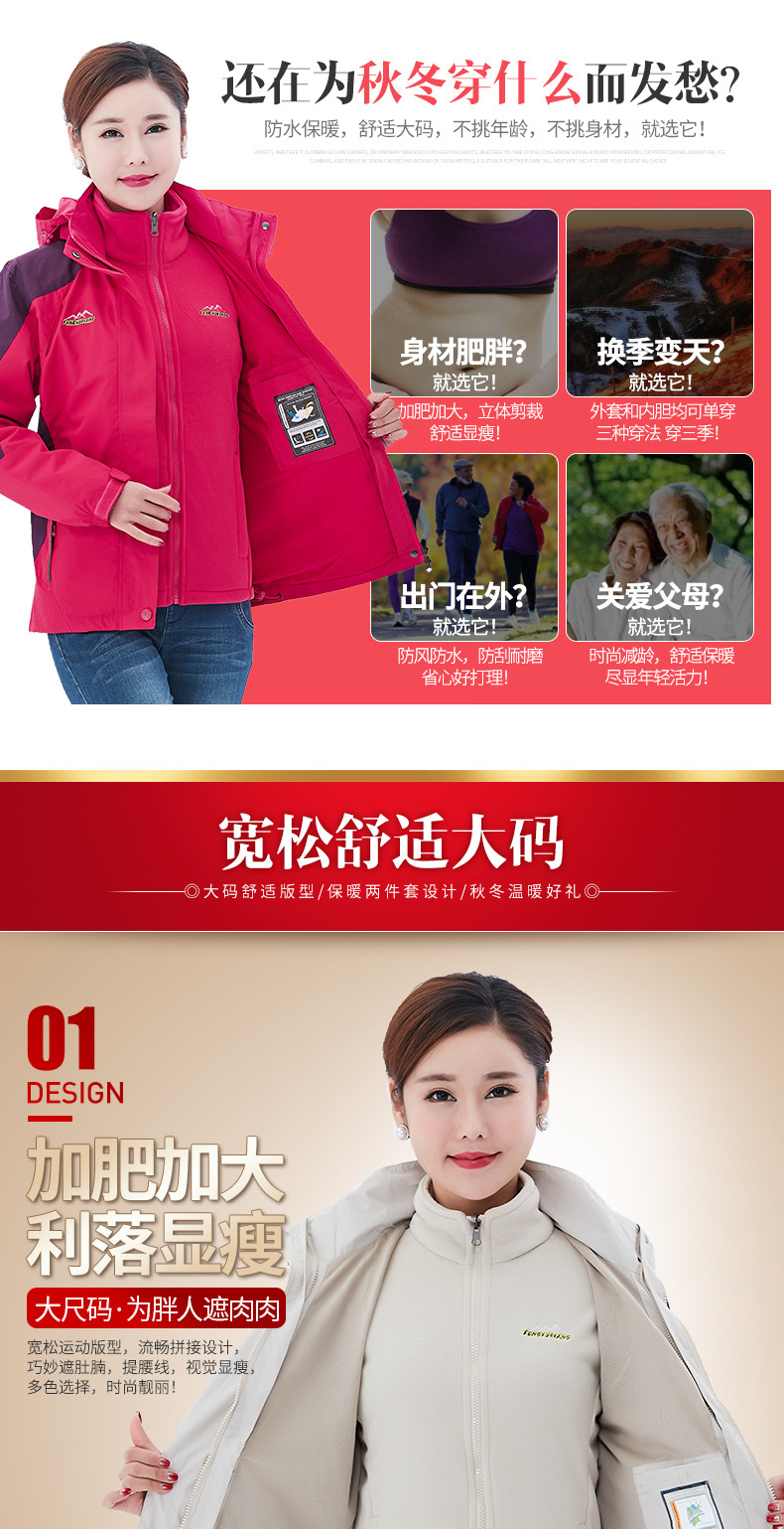 충전 의류 여성용 플러스 사이즈 플러스 비료 플러스 겨울 쓰리인원 기모 투피스 자켓 중년 및 노인 어머니 등산복