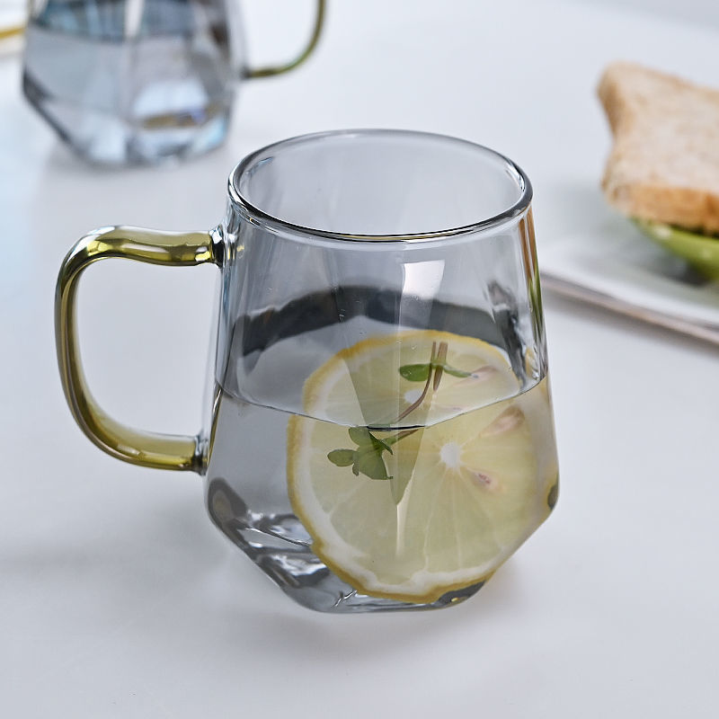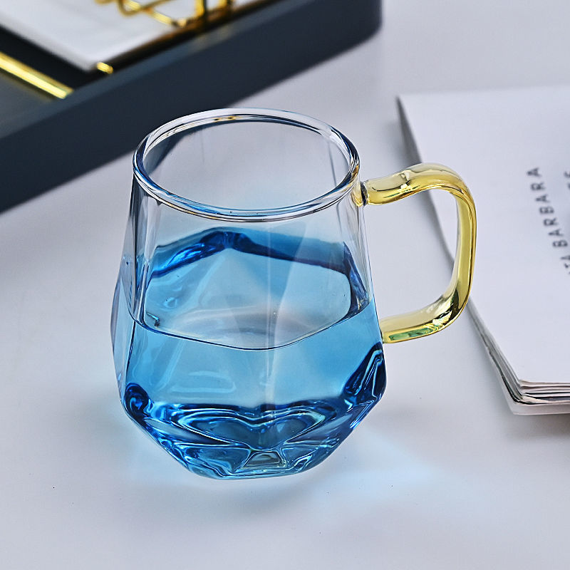 다채로운 유리 우유 차 마시는 컵 그라디언트 블루 다이아몬드 음료 컵 투명 유리 주스 커피 단층 컵
