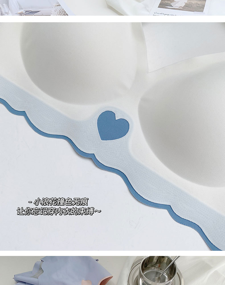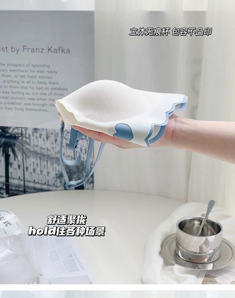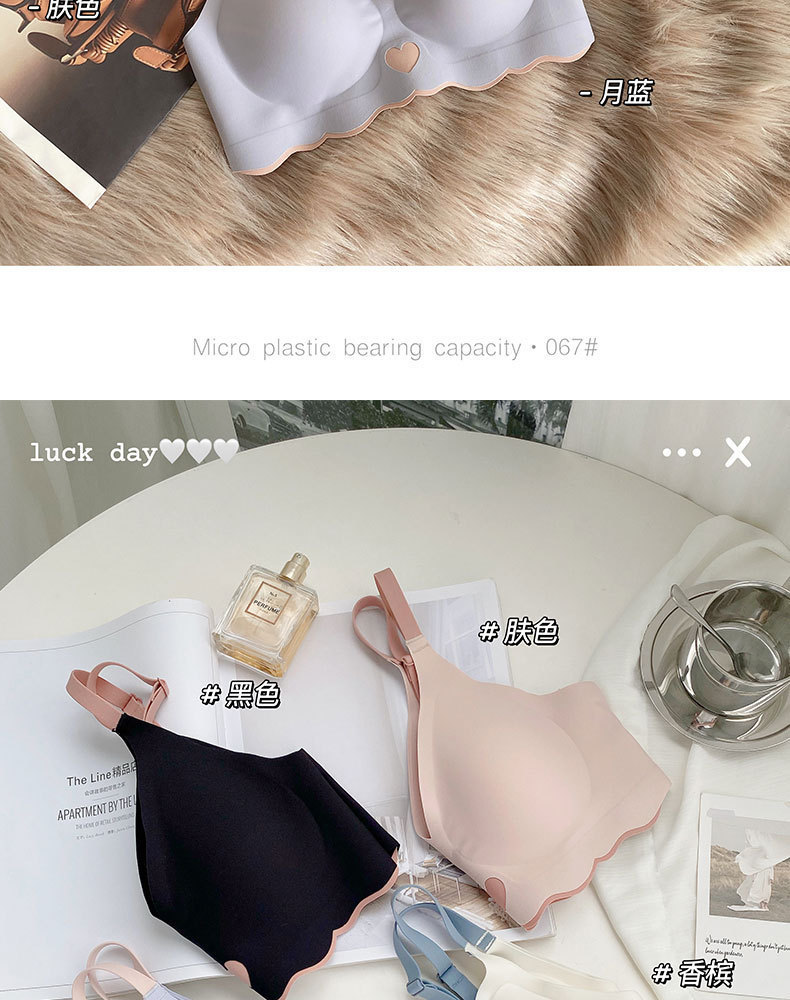 사계절 새로운 광택 누드 원활한 대비 색상 속옷 초박형 컵 원피스 작은 가슴 푸시 업 아름다운 뒤 소녀 브래지어