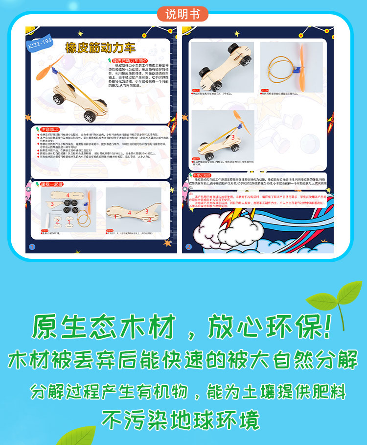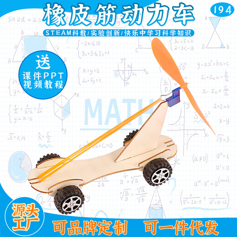 과학 기술 소량 제작 DIY 고무 밴드 파워 카 초등학교 학생 재미 실험 퍼즐 수동 조립 재료 가방스토어 가기