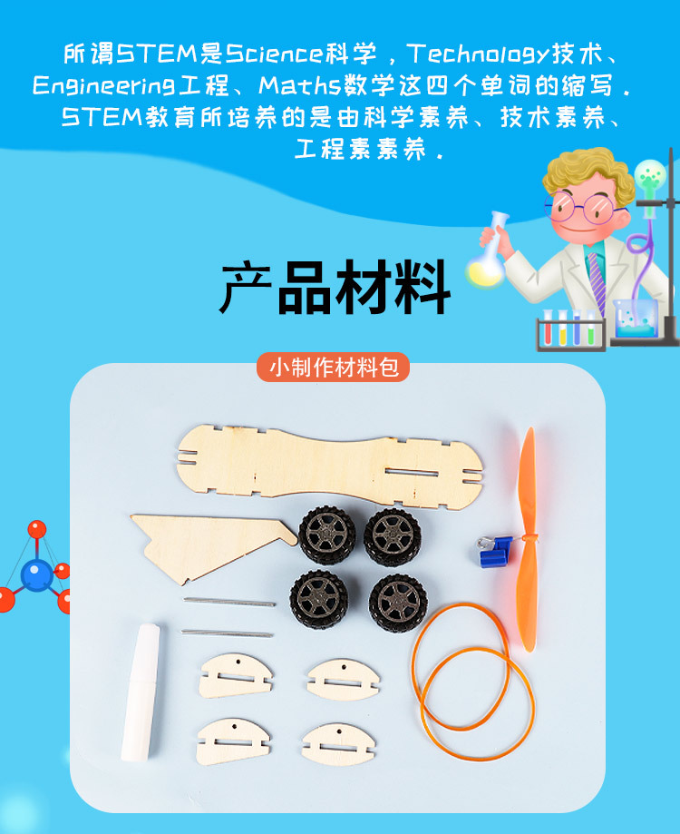 과학 기술 소량 제작 DIY 고무 밴드 파워 카 초등학교 학생 재미 실험 퍼즐 수동 조립 재료 가방