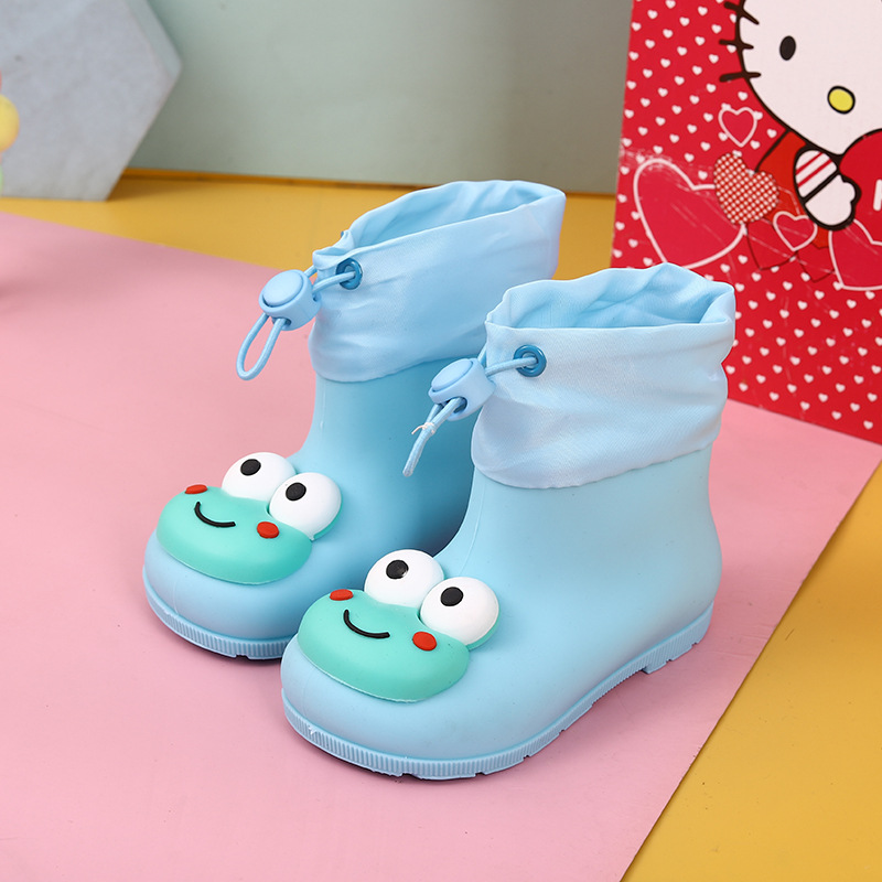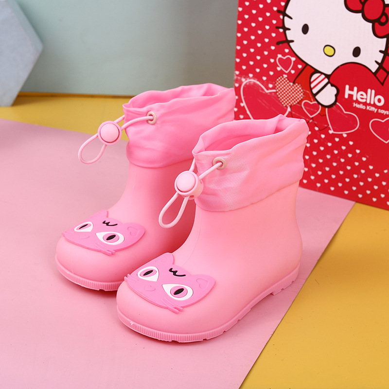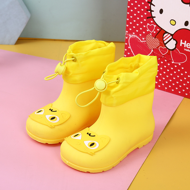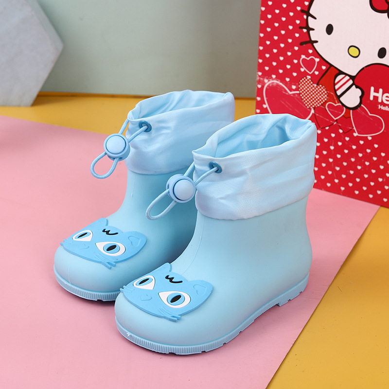 패션 귀여운 만화 어린이 비 부츠 짧은 튜브 드로 스트링 소프트 미끄럼 방지 방수 소년 소녀 비 슬립 워터 슈즈