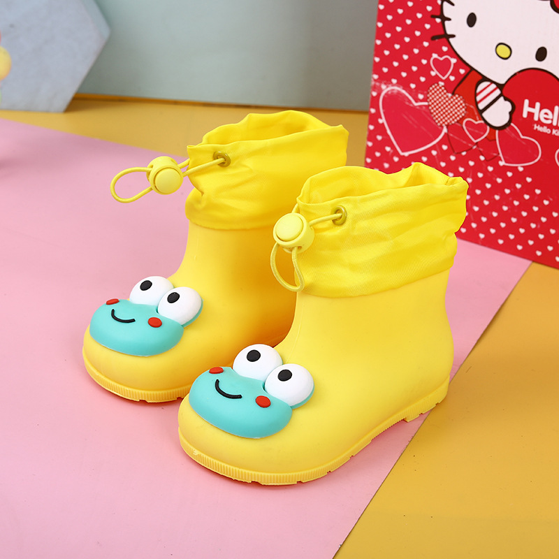 패션 귀여운 만화 어린이 비 부츠 짧은 튜브 드로 스트링 소프트 미끄럼 방지 방수 소년 소녀 비 슬립 워터 슈즈스토어 가기
