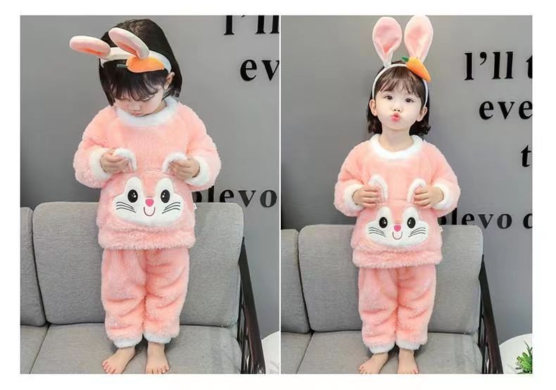 여아 잠옷 플란넬 아기의 잠옷 어린이 가을과 겨울 가정복 긴팔 세트 두꺼운 벨벳 따뜻한 투피스 세트