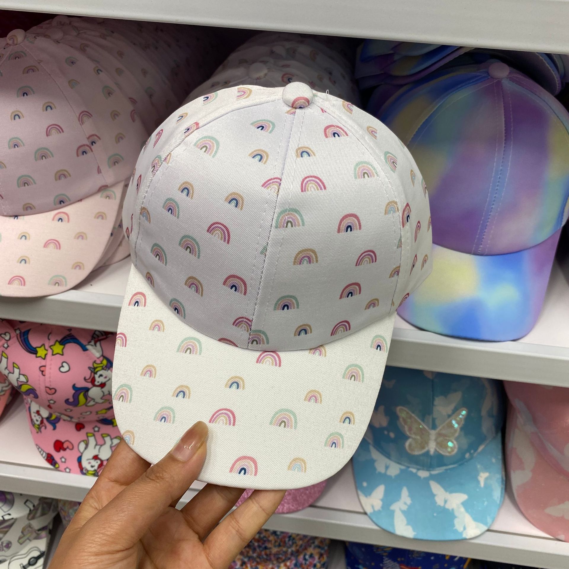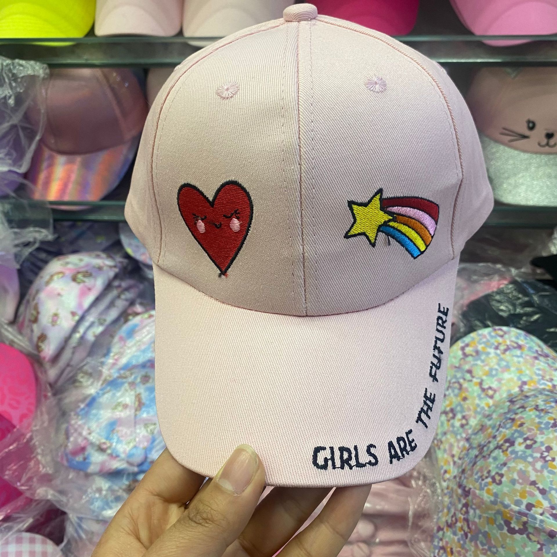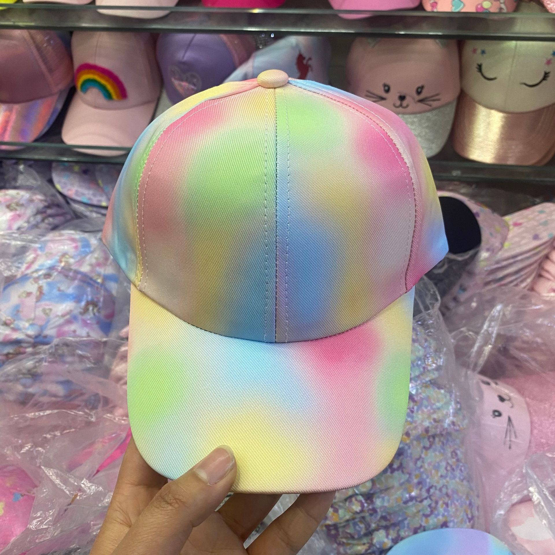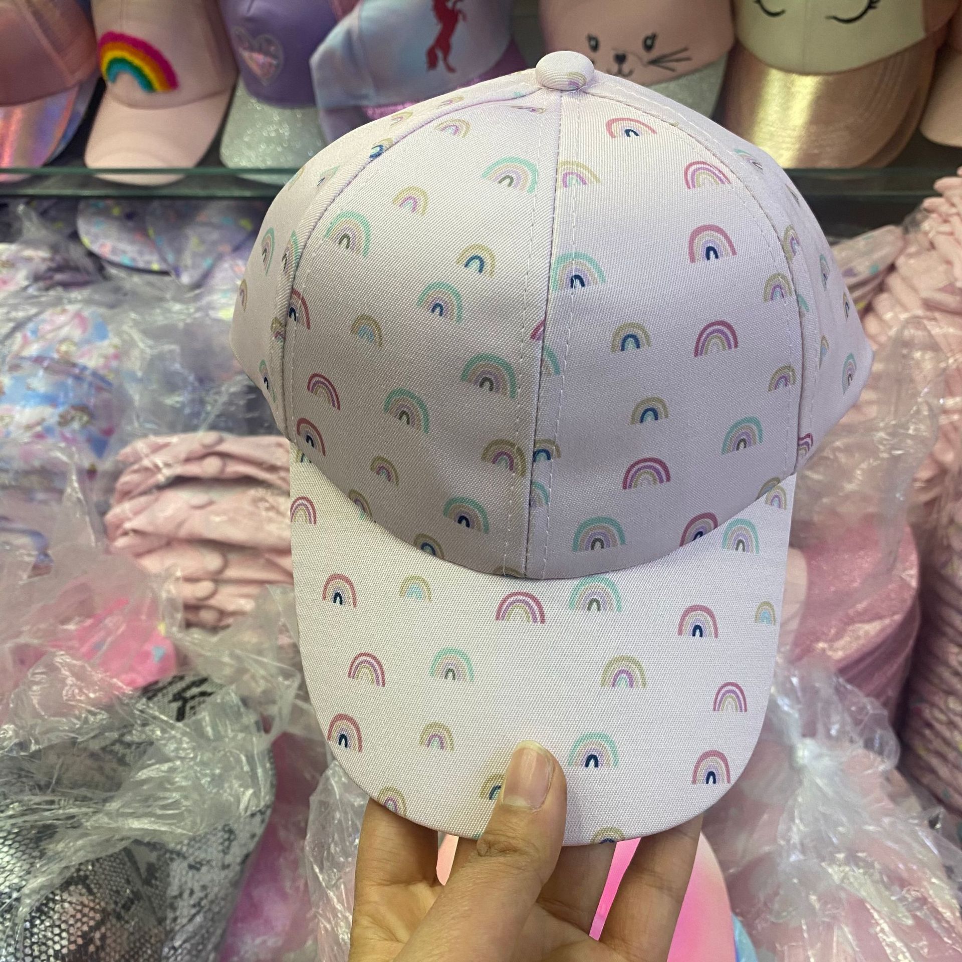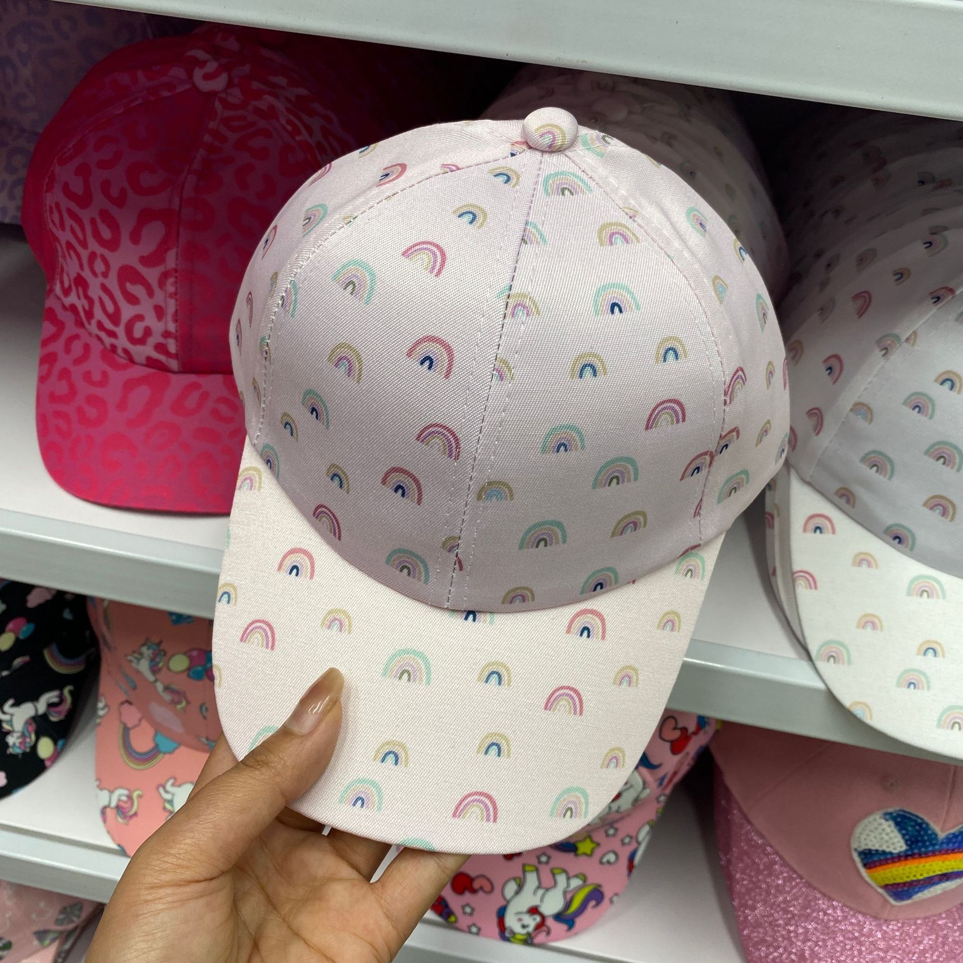 일본식 귀여운 무지개 야구 모자 여자의 보물 패션 넓은 챙 모자 한국식 만화 고양이 어린이 모자스토어 가기