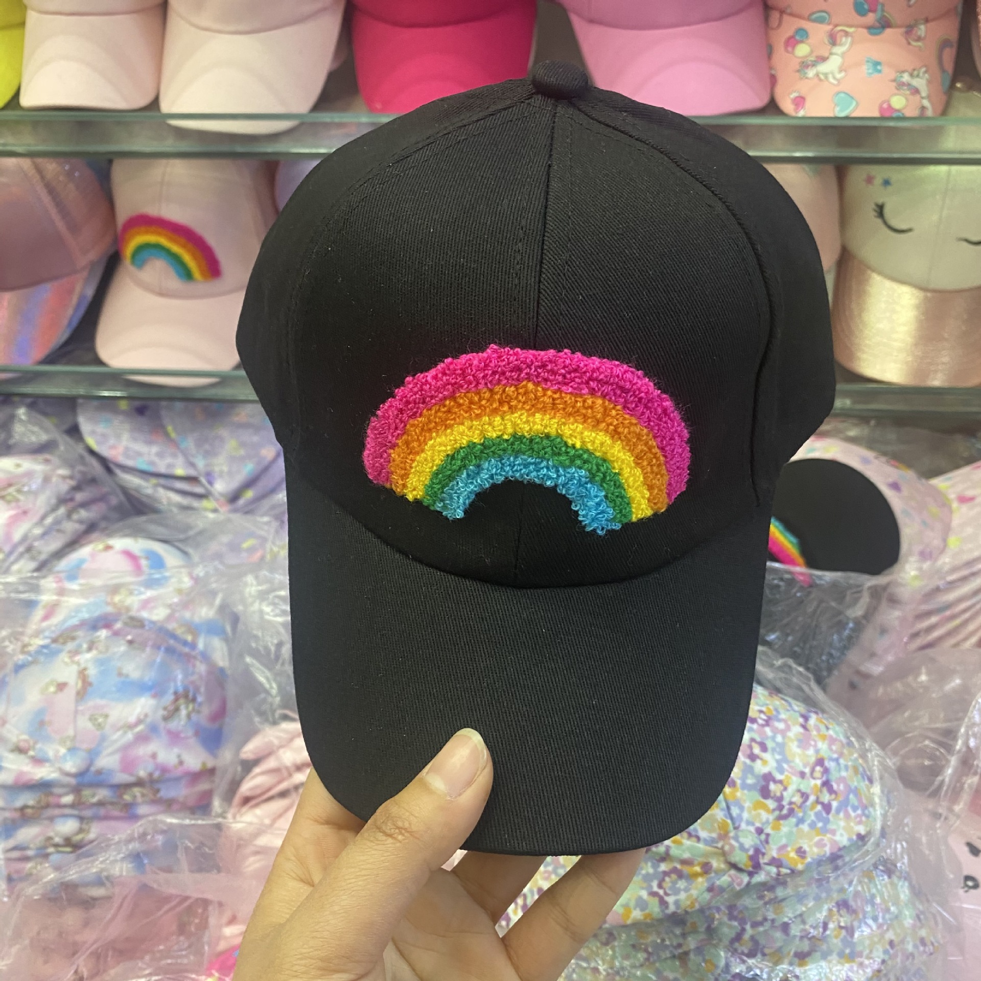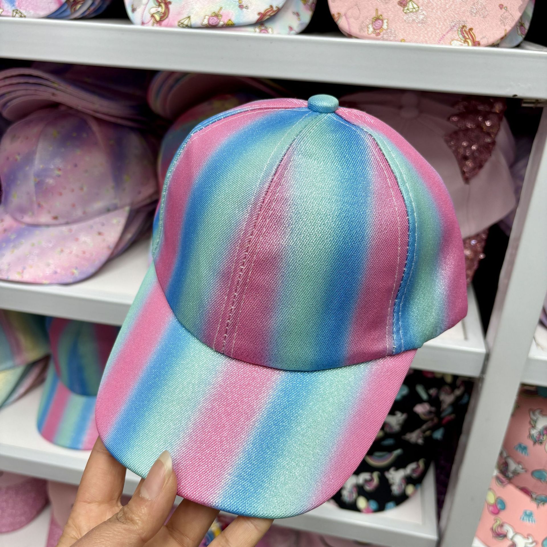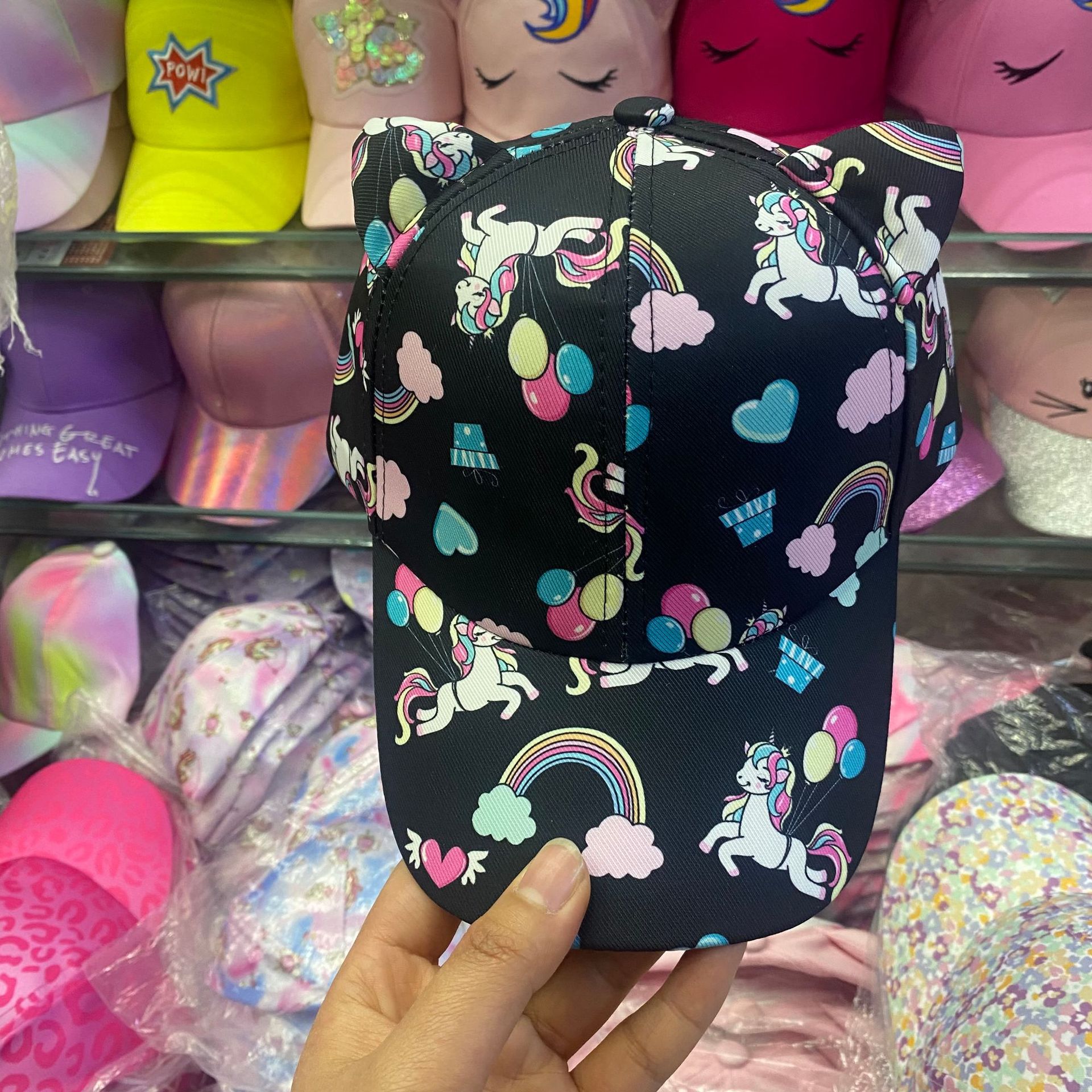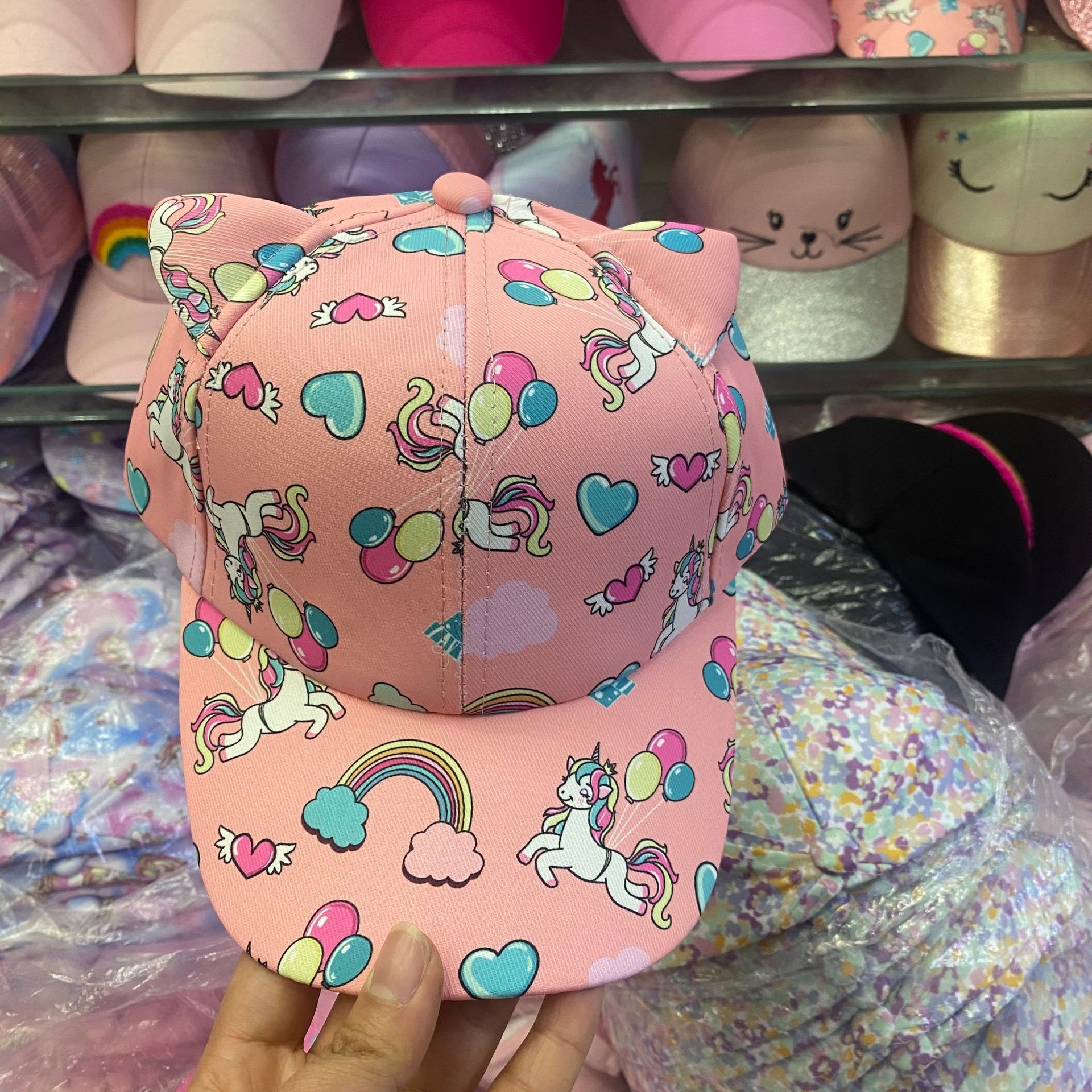 일본식 귀여운 무지개 야구 모자 여자의 보물 패션 넓은 챙 모자 한국식 만화 고양이 어린이 모자스토어 가기
