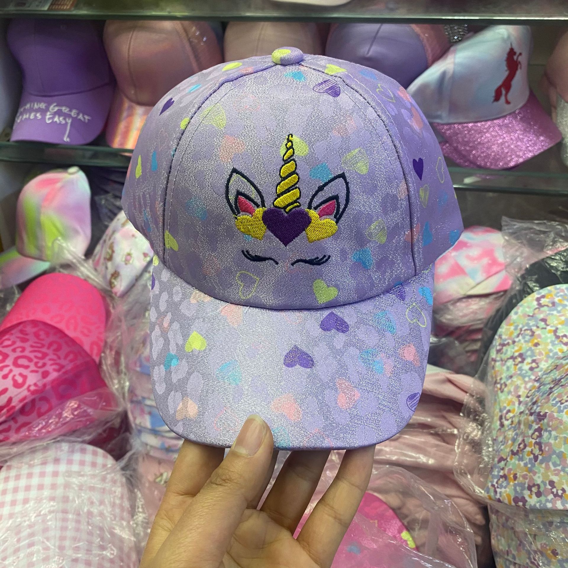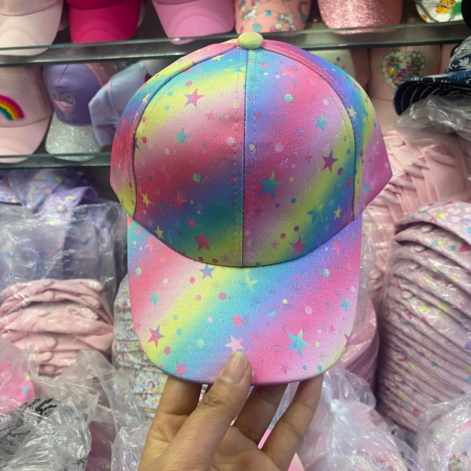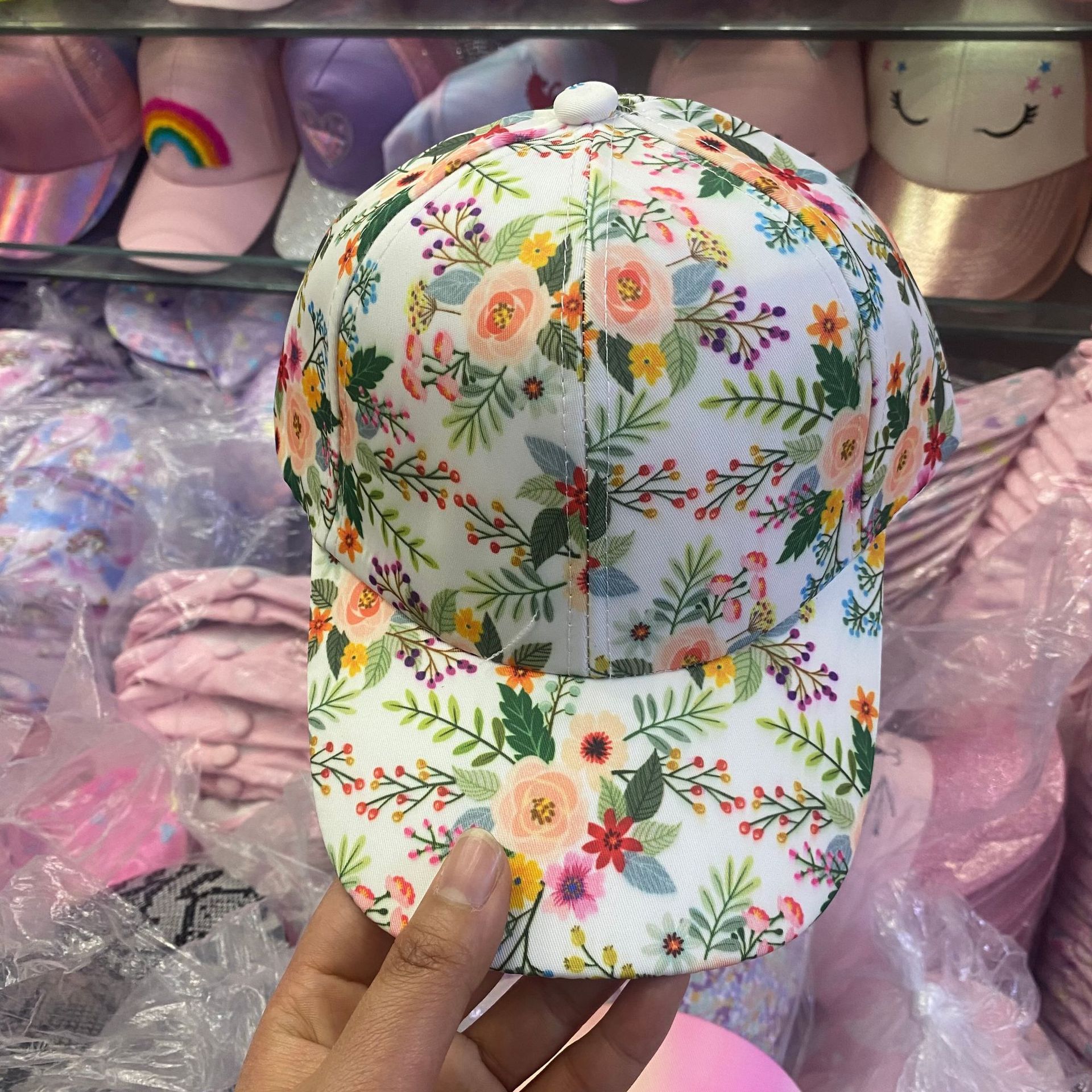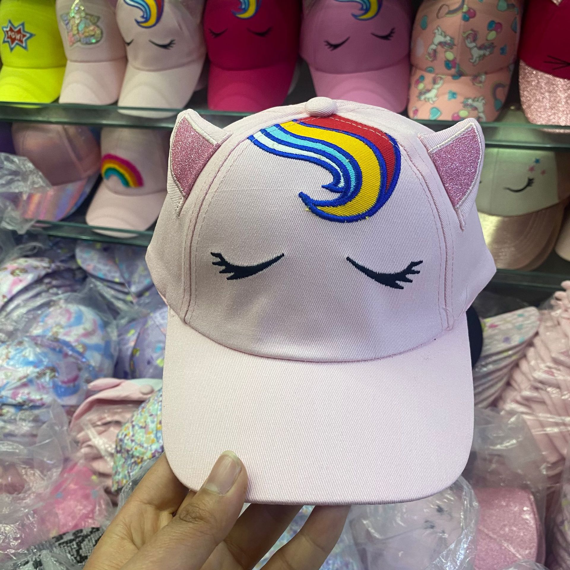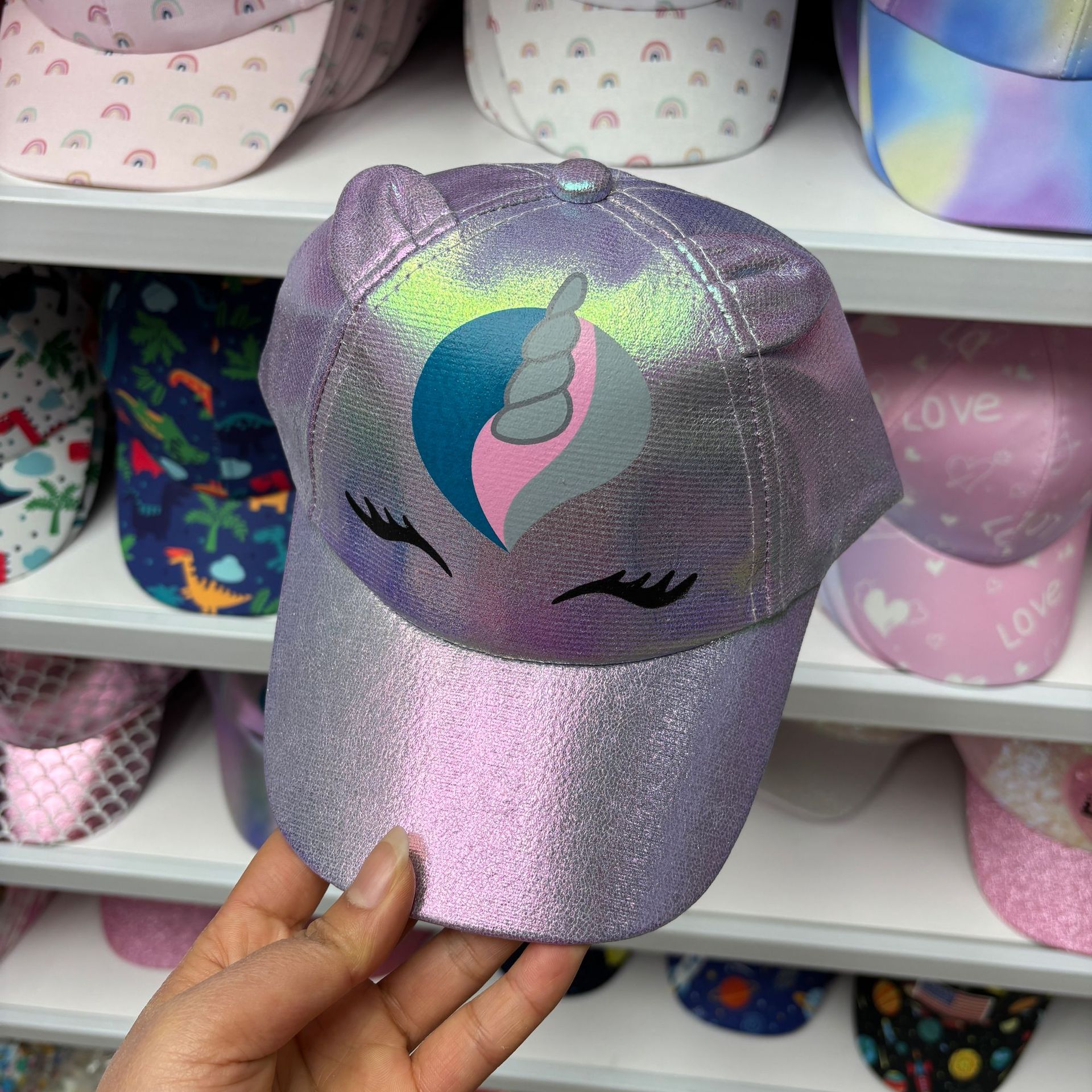 일본식 귀여운 무지개 야구 모자 여자의 보물 패션 넓은 챙 모자 한국식 만화 고양이 어린이 모자스토어 가기