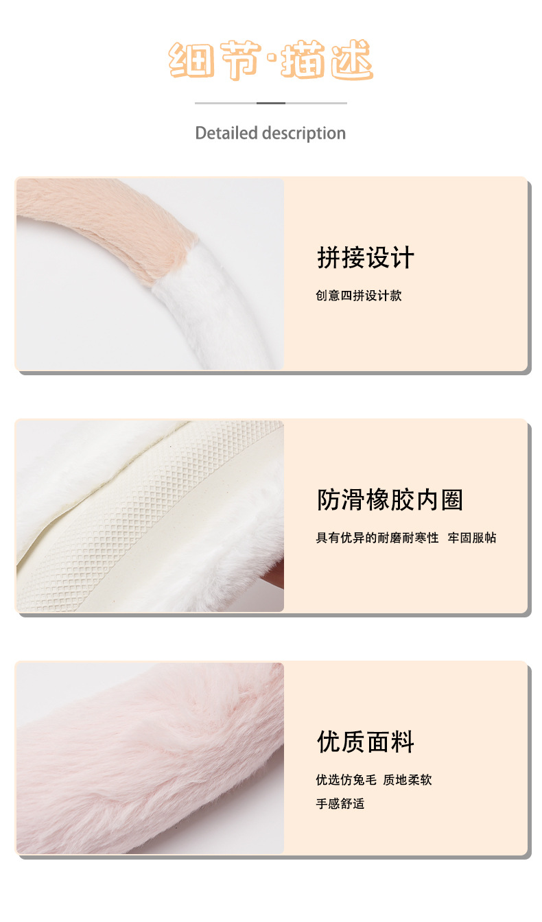 • 토끼 모피 4 섹션 핸들 세트 핑크 화이트