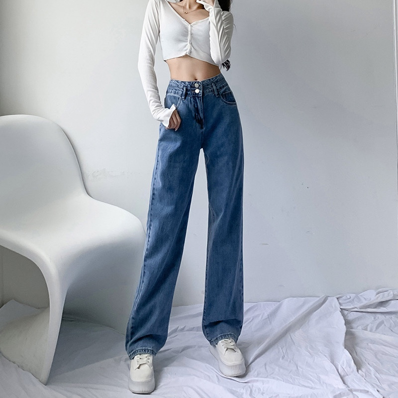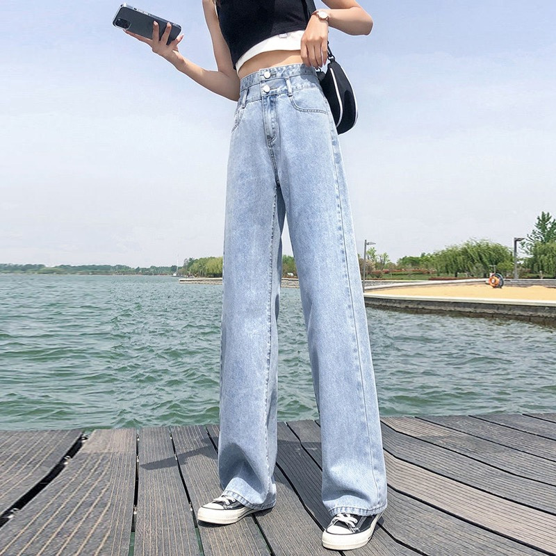대외 무역 여성 의류 2023 가을 새로운 넓은 다리 바지 여성의 높은 허리 드레이핑 스타일 데님 복고풍 스트레이트 느슨한 걸레 바지스토어 가기