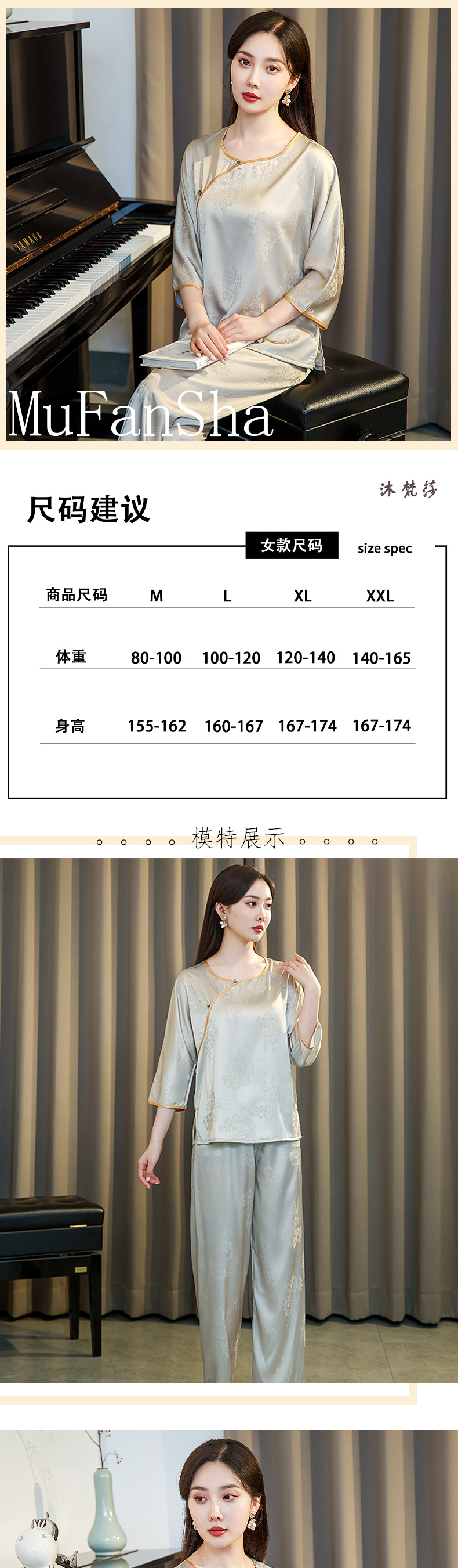 새로운 아이스 실크 잠옷 여자의 여름 중국 스타일 국가 스타일 세트 실크 새틴 풀오버 자카드 겉옷스토어 가기